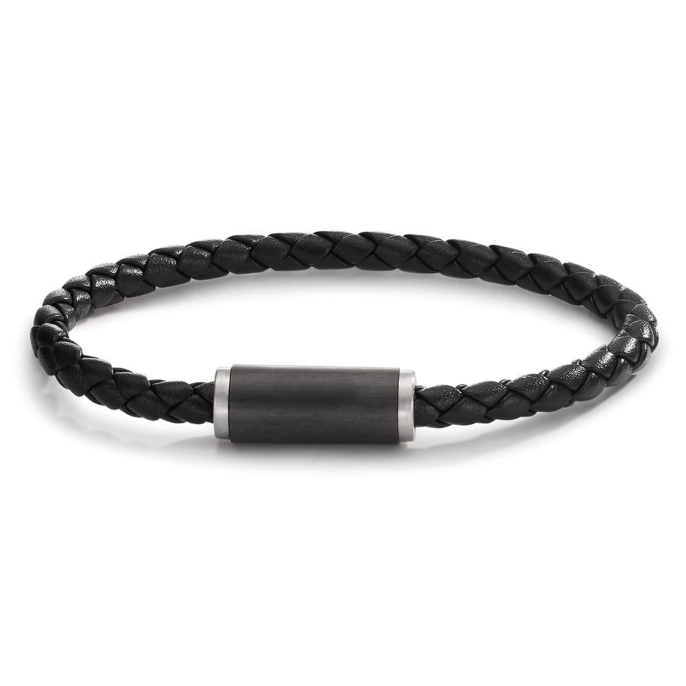 Armband Edelstahl, Leder, Carbon 21 cm Ø5.5 mm