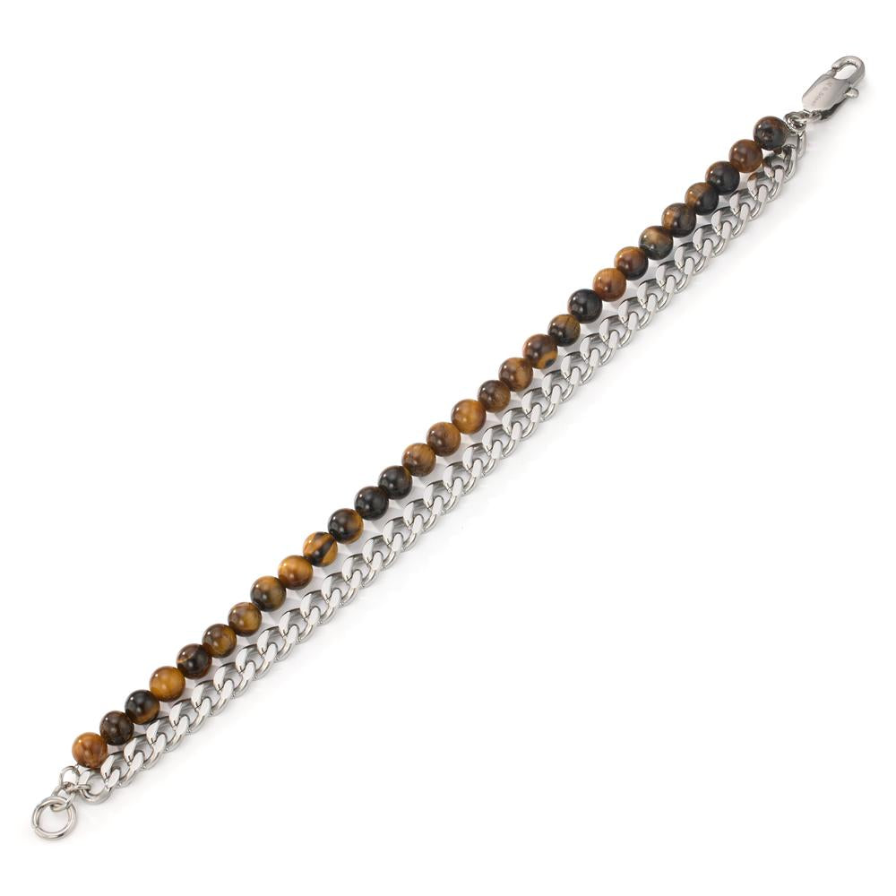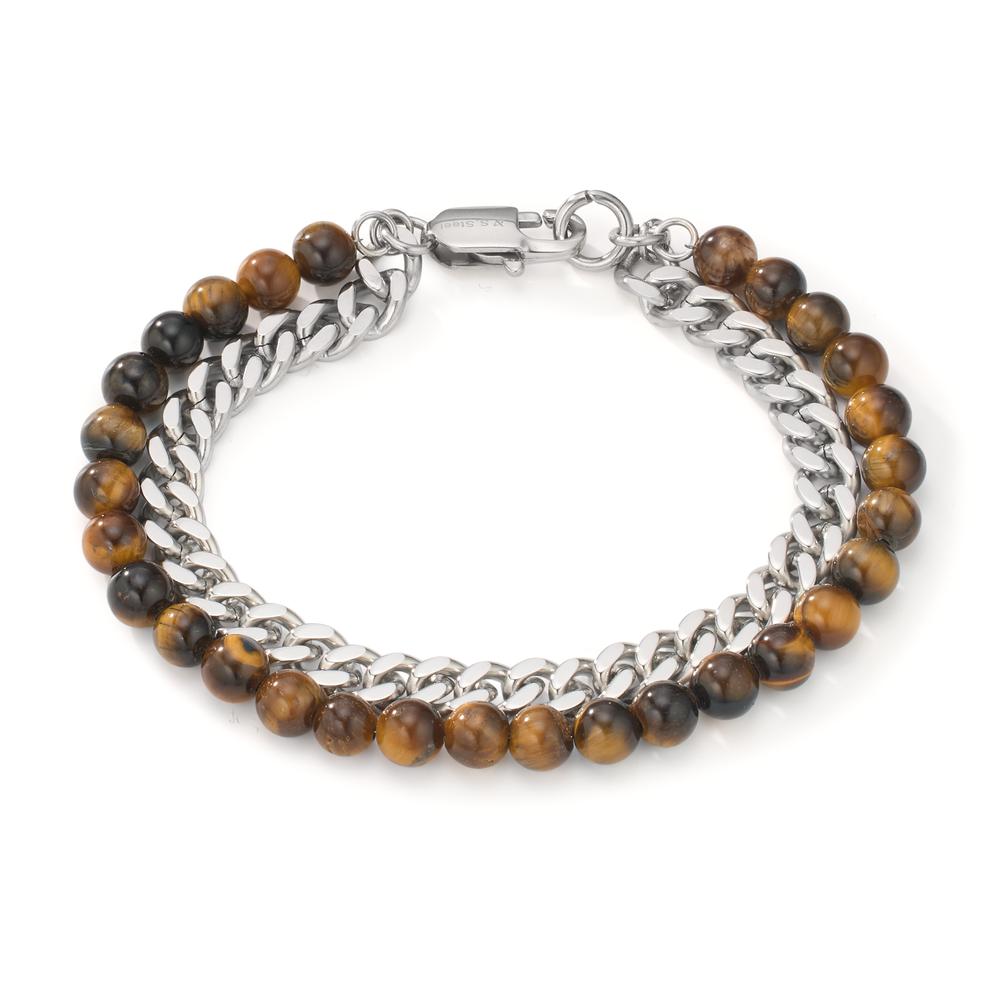 Dieses Herrenarmband kombiniert robusten Edelstahl mit eleganten Tigerauge-Perlen. Die Mischung aus glänzender Kette und warmen Natursteinen verleiht jedem Look Stil und Charakter. Ein maskulines Accessoire, das Alltag und besondere Anlässe perfekt ergänzt.