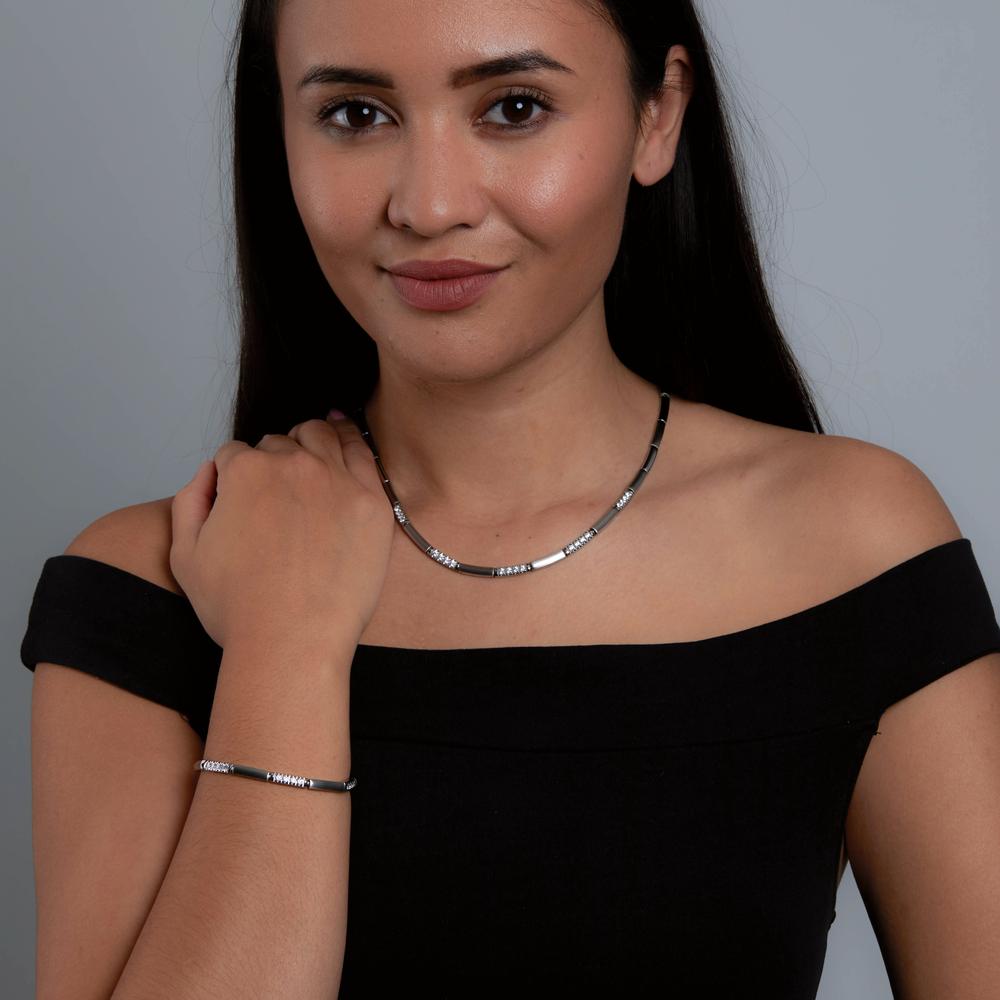 Elegantes Damenarmband aus hochwertigem Edelstahl, verziert mit funkelnden Zirkonia-Steinen. Das zeitlose Design macht es zum perfekten Accessoire für jeden Anlass. Hautfreundlich, langlebig und ein stilvoller Begleiter für Ihren Alltag oder besondere Momente.