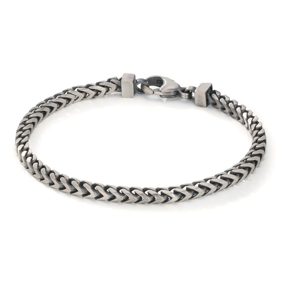 Stylisches Herrenarmband aus hochwertigem Silber. Das zeitlose Design mit fein gearbeiteten Gliedern sorgt für einen maskulinen Look, der sich ideal zu jedem Outfit kombinieren lässt. Robuster Karabinerverschluss garantiert sicheren Halt und hohen Tragekomfort.