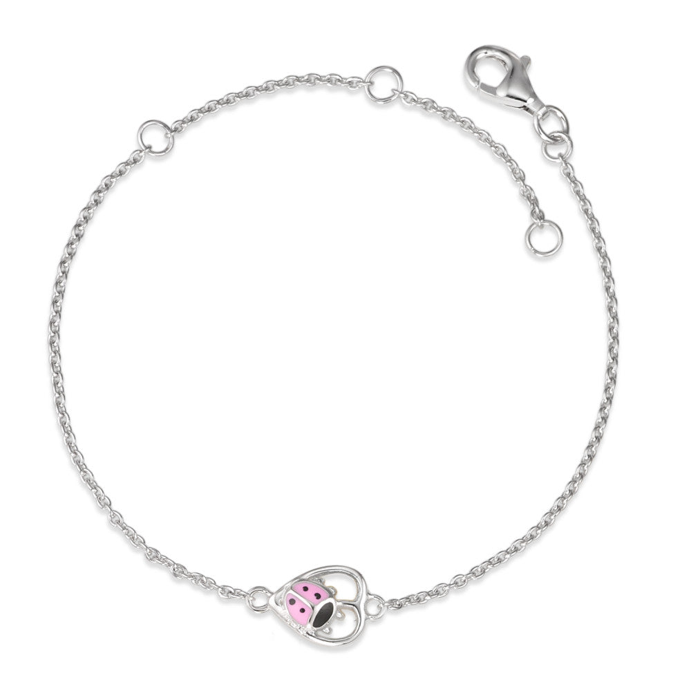 Dieses zauberhafte Mädchen-Armband aus echtem Silber besticht durch einen süßen Marienkäfer-Anhänger mit rosa Details. Die feine Kette ist verstellbar und sorgt für einen bequemen Sitz. Ein liebevolles Accessoire für kleine Glücksbringer und strahlende Outfits!