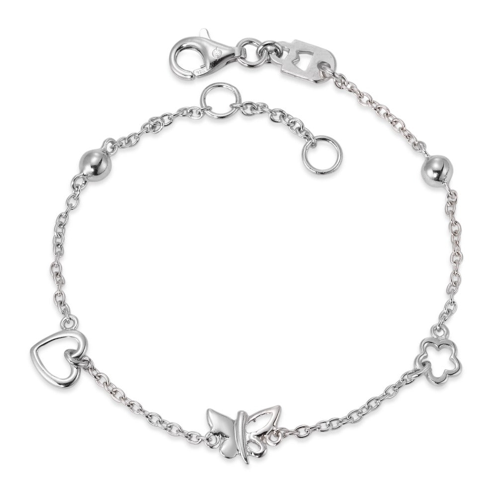 Elegantes Damen-Armband aus hochwertigem Silber mit zarten Elementen: Schmetterling, Herz und Blume. Feine Kugeln und eine verstellbare Kettenglieder-Länge sorgen für perfekten Sitz. Ein femininer, zeitloser Schmuck, der jeden Look stilvoll ergänzt.