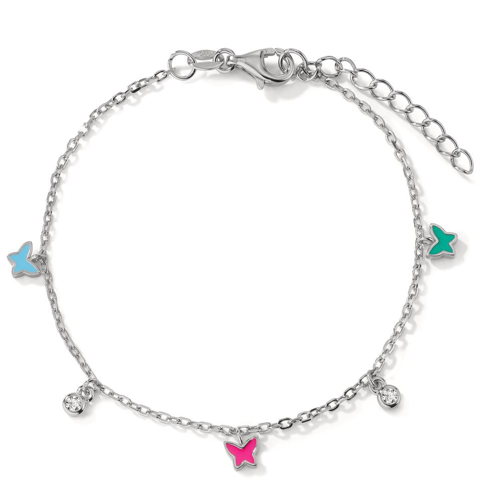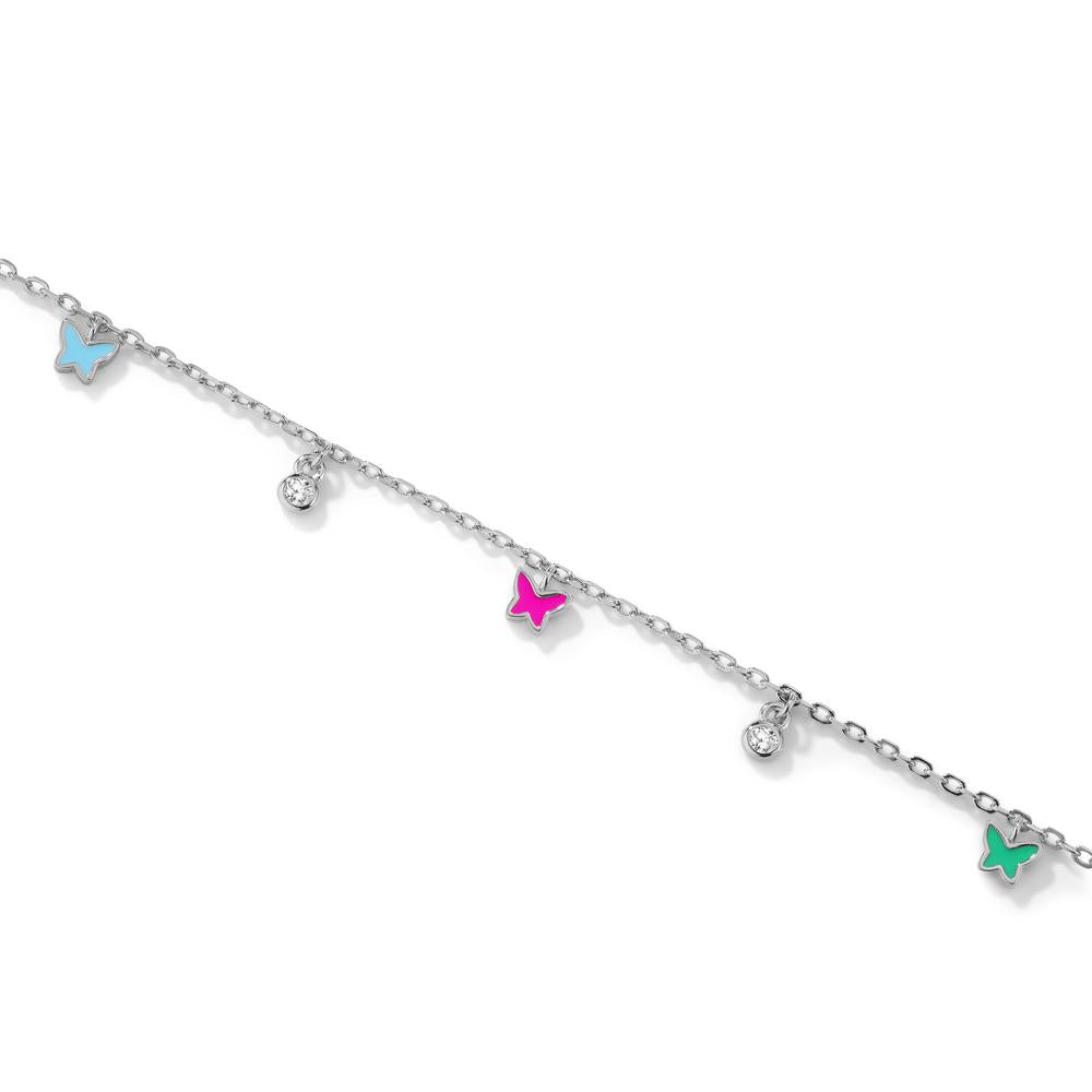 Elegantes Damenarmband aus hochwertigem 925er Silber, verziert mit farbenfrohen Schmetterlingsanhängern und funkelnden Zirkonia-Steinen. Das filigrane Design und die verstellbare Länge machen es zum perfekten Accessoire für jeden Anlass. Ein zauberhaftes Schmuckstück für Frauen.