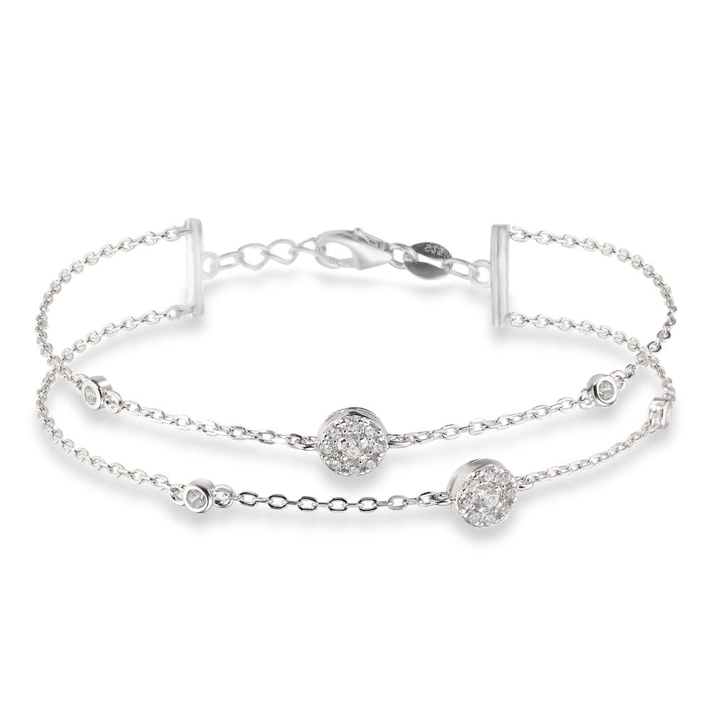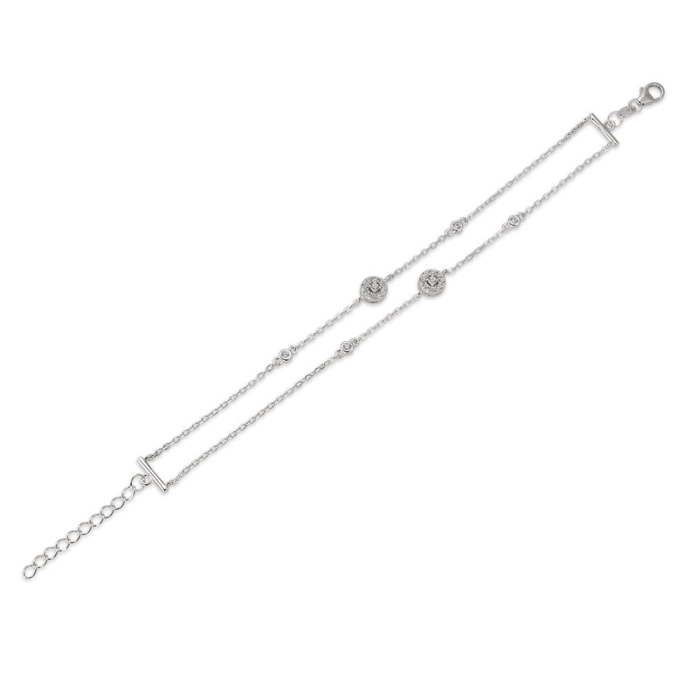 Elegantes Damenarmband aus hochwertigem Silber mit funkelnden Zirkonia-Steinen. Das feine, doppelte Ketten-Design verleiht jedem Outfit einen edlen Touch. Ideal für besondere Anlässe oder den täglichen Glamour-Look. Zeitlos schön und perfekt als Geschenk.