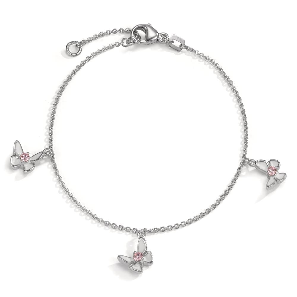 Armband Silber Zirkonia rosa, 3 Steine rhodiniert Schmetterling verstellbar