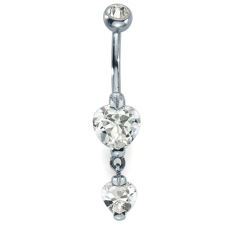 Elegantes Damen Bauchpiercing aus hochwertigem Edelstahl mit zwei funkelnden Kristall-Herzen. Das ansprechende Design sorgt für einen bezaubernden Look und bringt Ihre Weiblichkeit perfekt zur Geltung. Ideal für stilbewusste Frauen, die Wert auf Qualität und Glamour legen.
