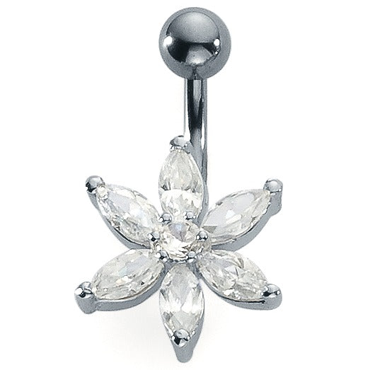 Bauchpiercing Edelstahl Zirkonia weiss, 7 Steine Blume Ø16 mm