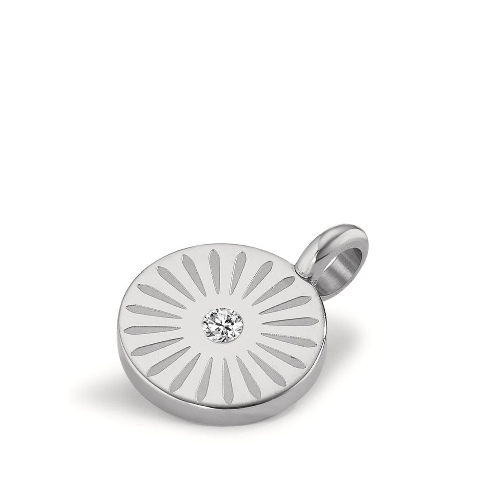 Eleganter Damenanhänger aus hochwertigem Edelstahl, verziert mit strahlenden Zirkonia-Steinen in der Mitte. Das stilvolle Design mit feinen Gravuren sorgt für zeitlose Schönheit und passt perfekt zu jedem Outfit – ideal für Alltag und besondere Anlässe.