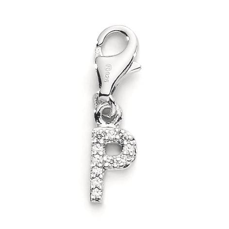 Eleganter Damen-Charm aus hochwertigem 925er Silber in Form des Buchstabens "P". Verziert mit funkelnden Zirkonia-Steinen, die dem Anhänger einen besonderen Glanz verleihen. Mit praktischem Karabiner-Verschluss zum einfachen Anbringen an Armbändern oder Ketten.