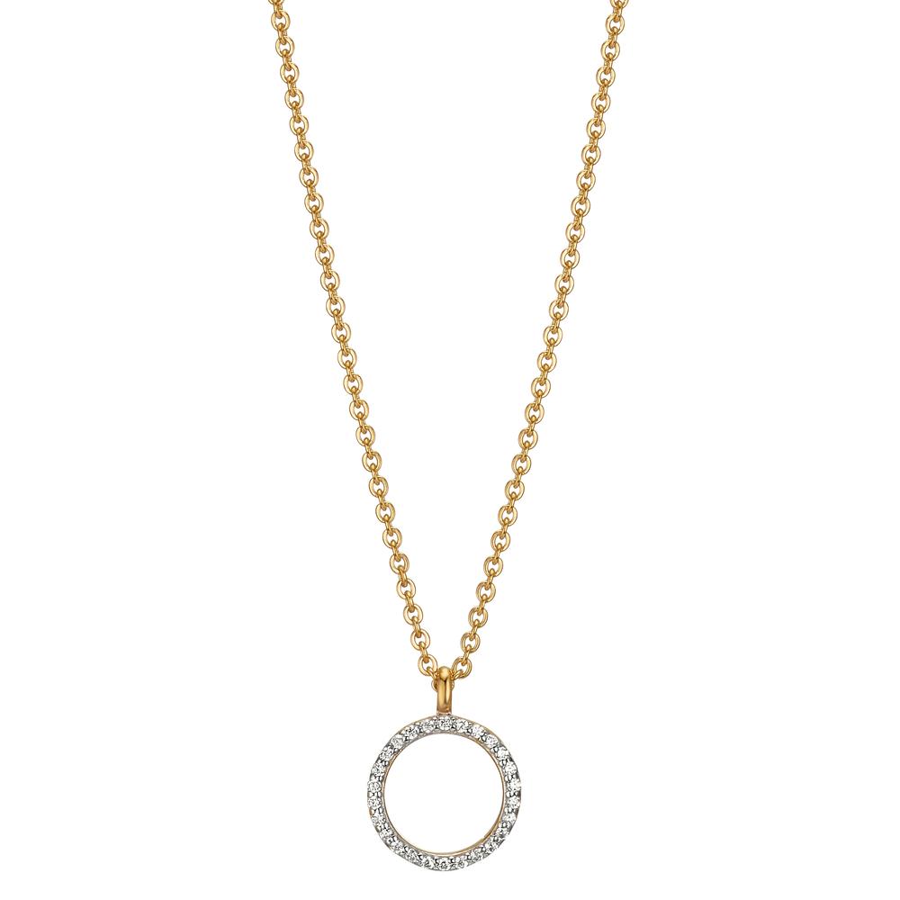 Elegantes Damen-Collier aus 375er Gelbgold mit funkelnden Zirkonia-Steinen im kreisrunden Anhänger. Das zeitlose Design und die hochwertige Verarbeitung machen diese Halskette zum perfekten Accessoire für jeden Anlass. Ein zeitloses Schmuckstück voller Strahlkraft.