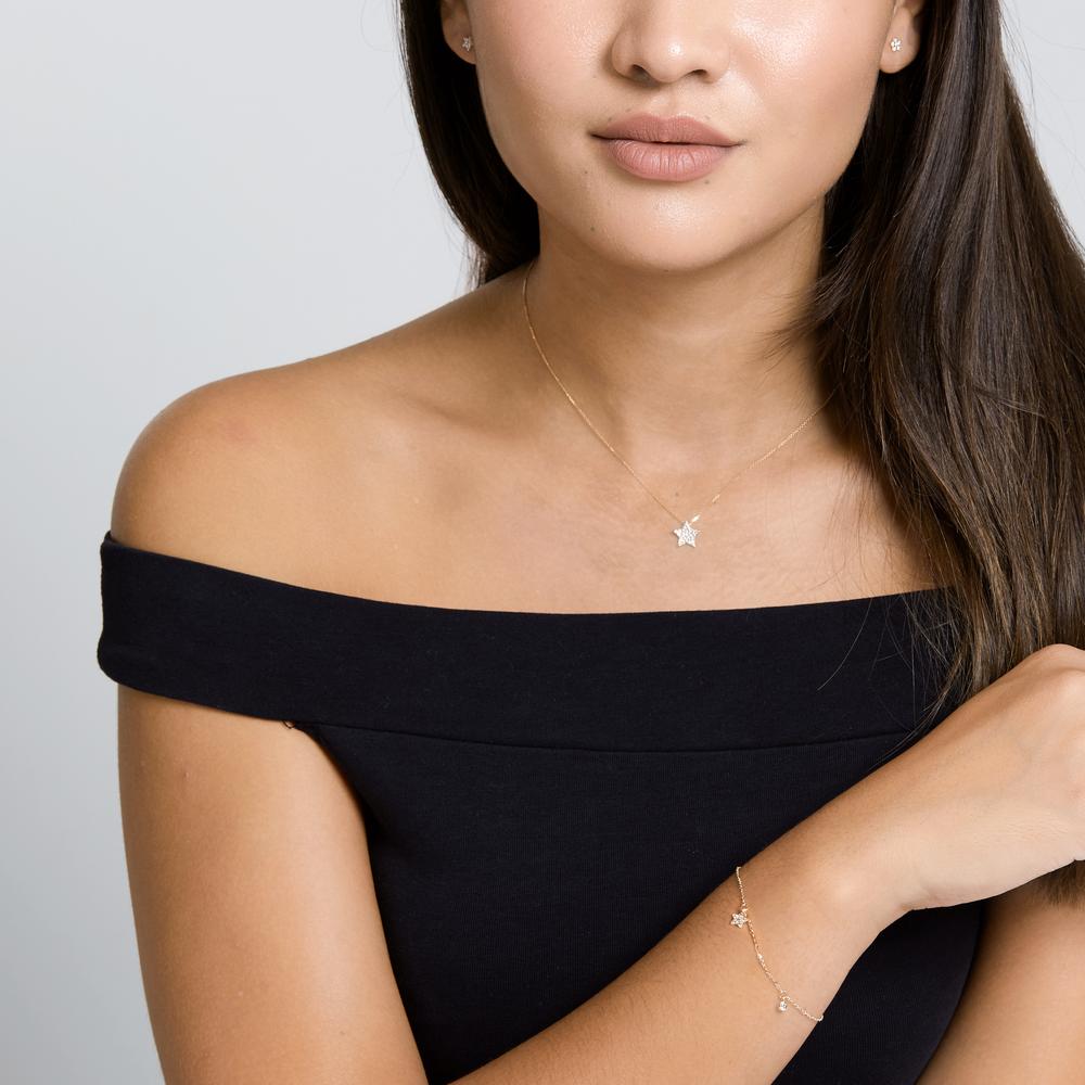 Edles Damen-Collier aus 585er Gelbgold mit funkelndem Stern-Anhänger, besetzt mit glitzernden Zirkonia-Steinen. Ein zeitloses Schmuckstück, das jedem Outfit eine besondere Note verleiht und perfekt für jeden Anlass ist. Leicht und angenehm zu tragen.