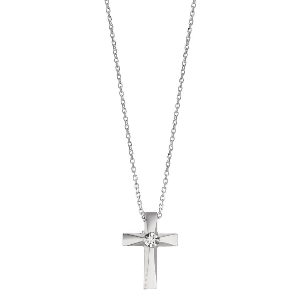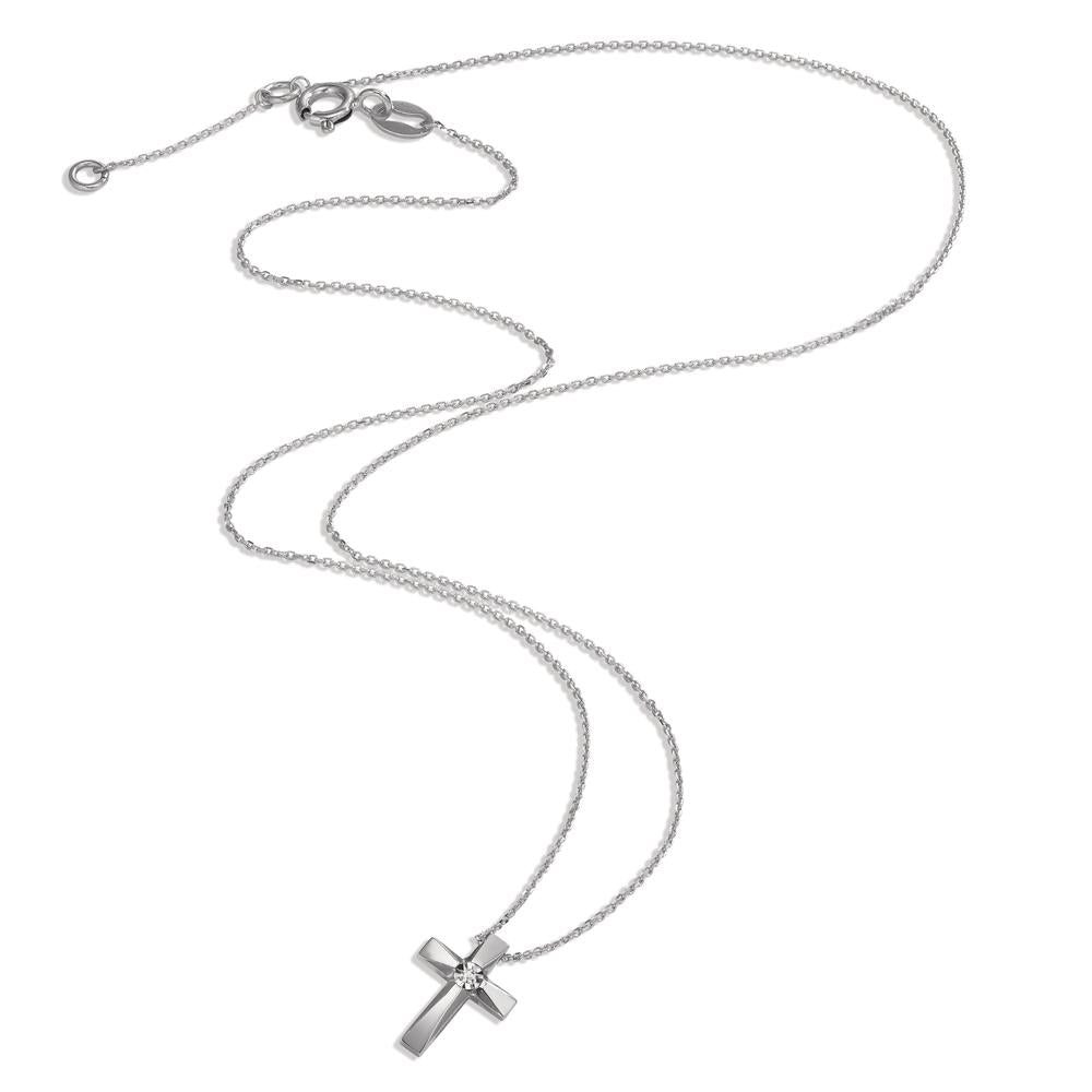 Collier 750/18 K Weissgold Diamant 0.005 ct, w-si Kreuz 40-42 cm verstellbar