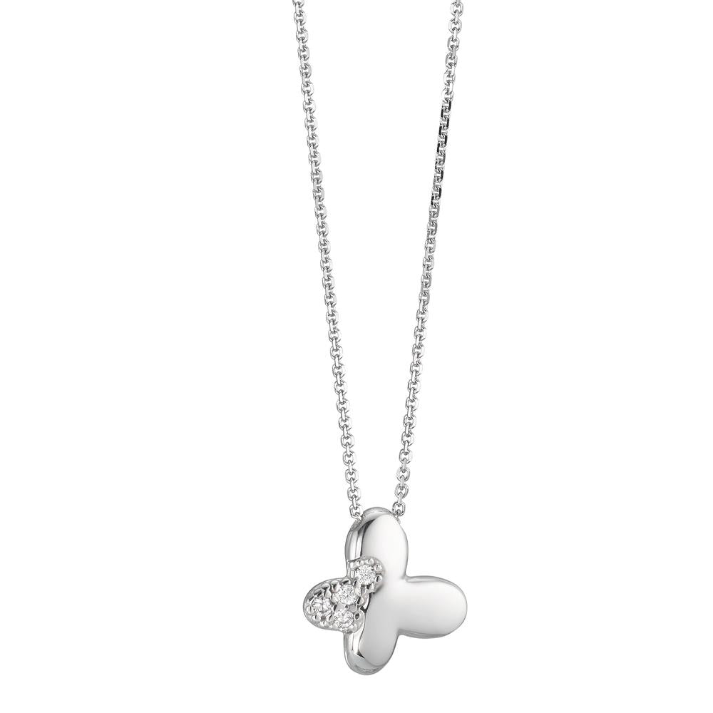 Collier 750/18 K Weissgold Zirkonia 4 Steine Schmetterling 42 cm