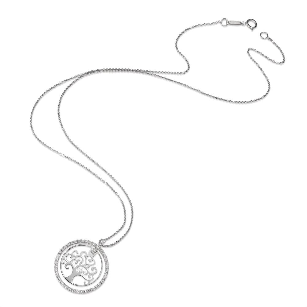 Collier 750/18 K Weissgold Zirkonia Lebensbaum 42 cm Ø18 mm