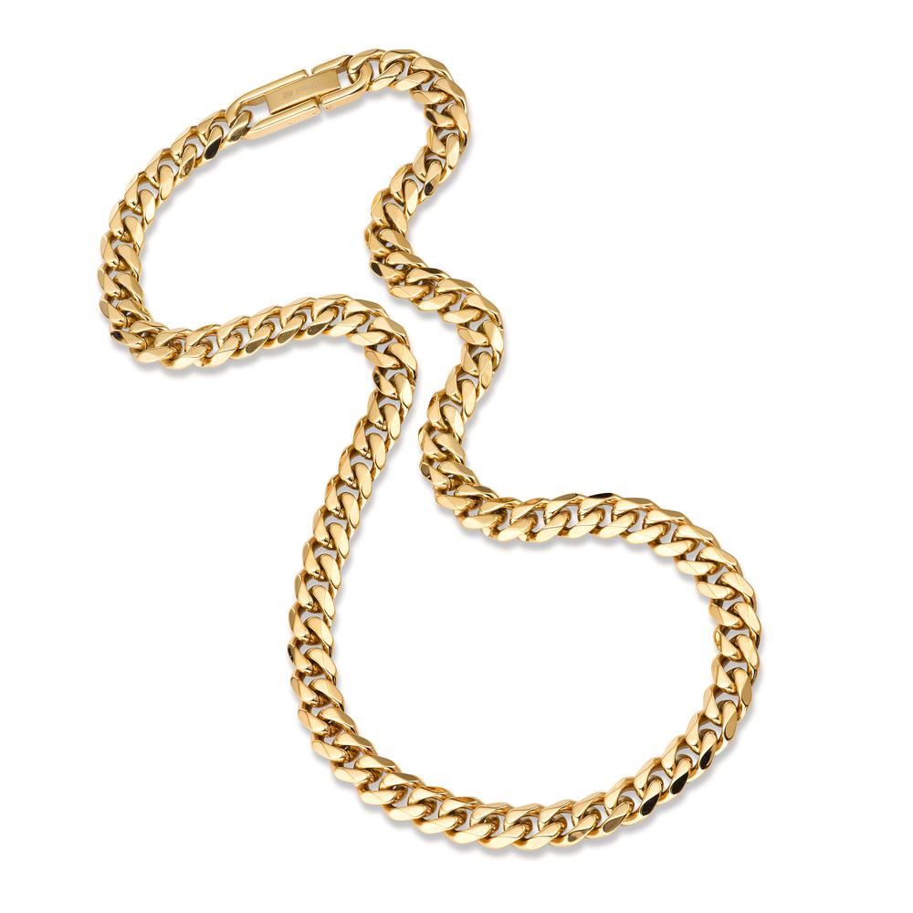 Stilvolles Collier aus hochwertigem Edelstahl mit elegantem Gliederdesign in glänzendem Goldton. Zeitloses Schmuckstück, das jedem Outfit das gewisse Etwas verleiht. Robust, langlebig und hautfreundlich – perfekt für den täglichen Gebrauch oder besondere Anlässe.