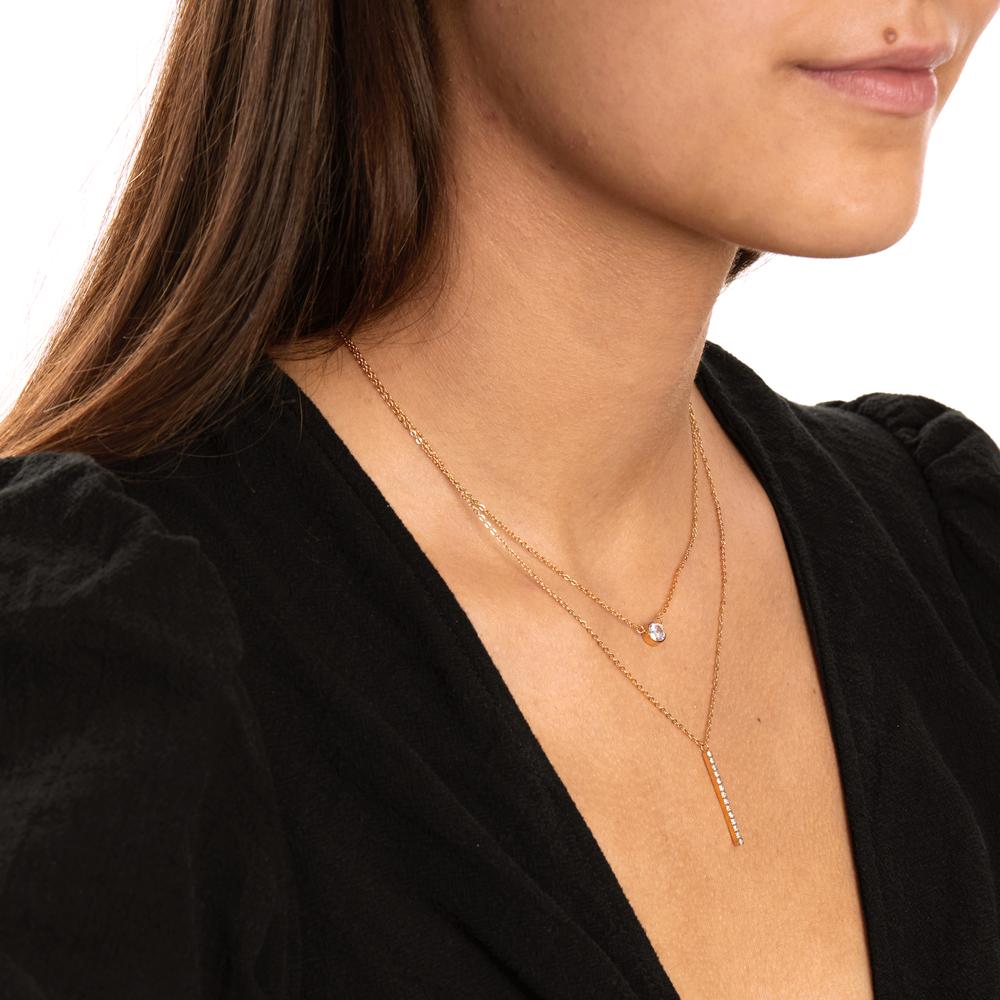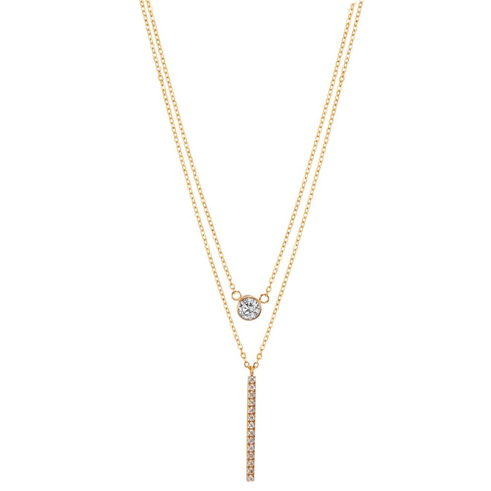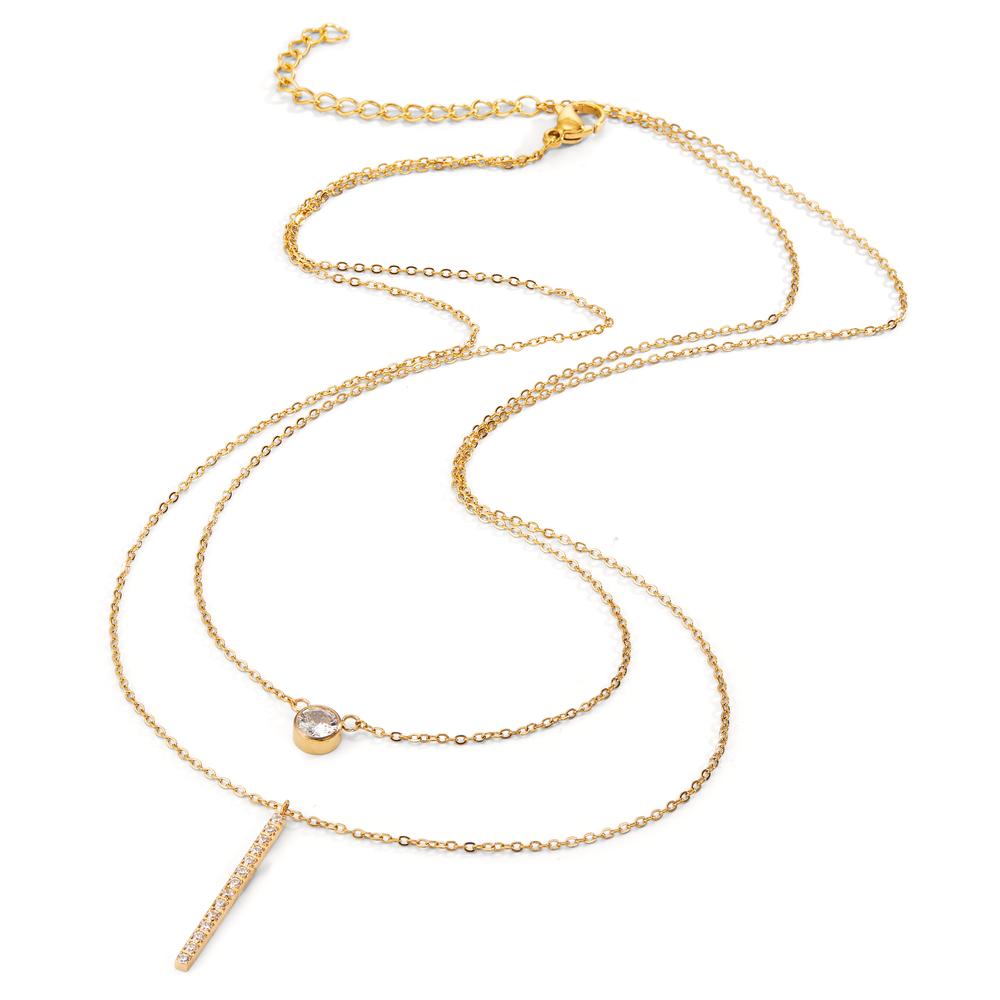 Elegantes Damen-Collier aus hochwertigem Edelstahl mit funkelnden Zirkonia-Steinen. Das zweireihige Design verleiht jedem Outfit zeitlose Eleganz und besonderen Glanz. Perfekt für besondere Anlässe oder den Alltag – modern, leicht und edel.