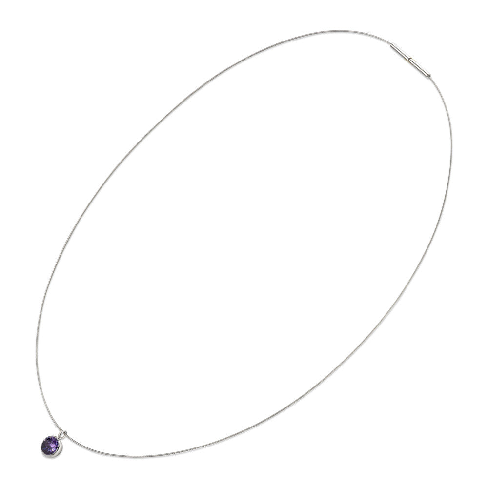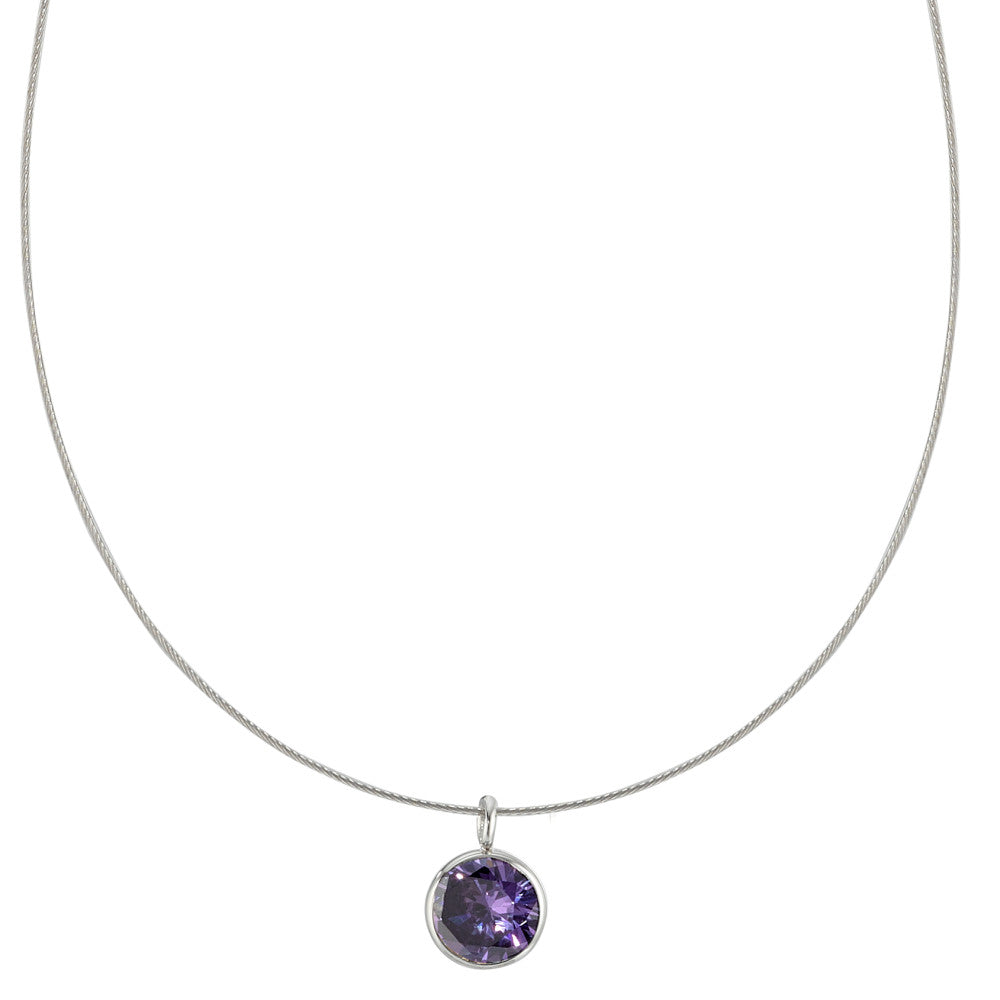 Elegantes Damen-Collier aus hochwertigem Edelstahl mit funkelndem Zirkonia-Anhänger in violett. Das zeitlose Design macht es zum perfekten Accessoire für jeden Anlass – ob im Alltag oder zu besonderen Events. Hautfreundlich und langlebig, ein idealer Schmuckklassiker.