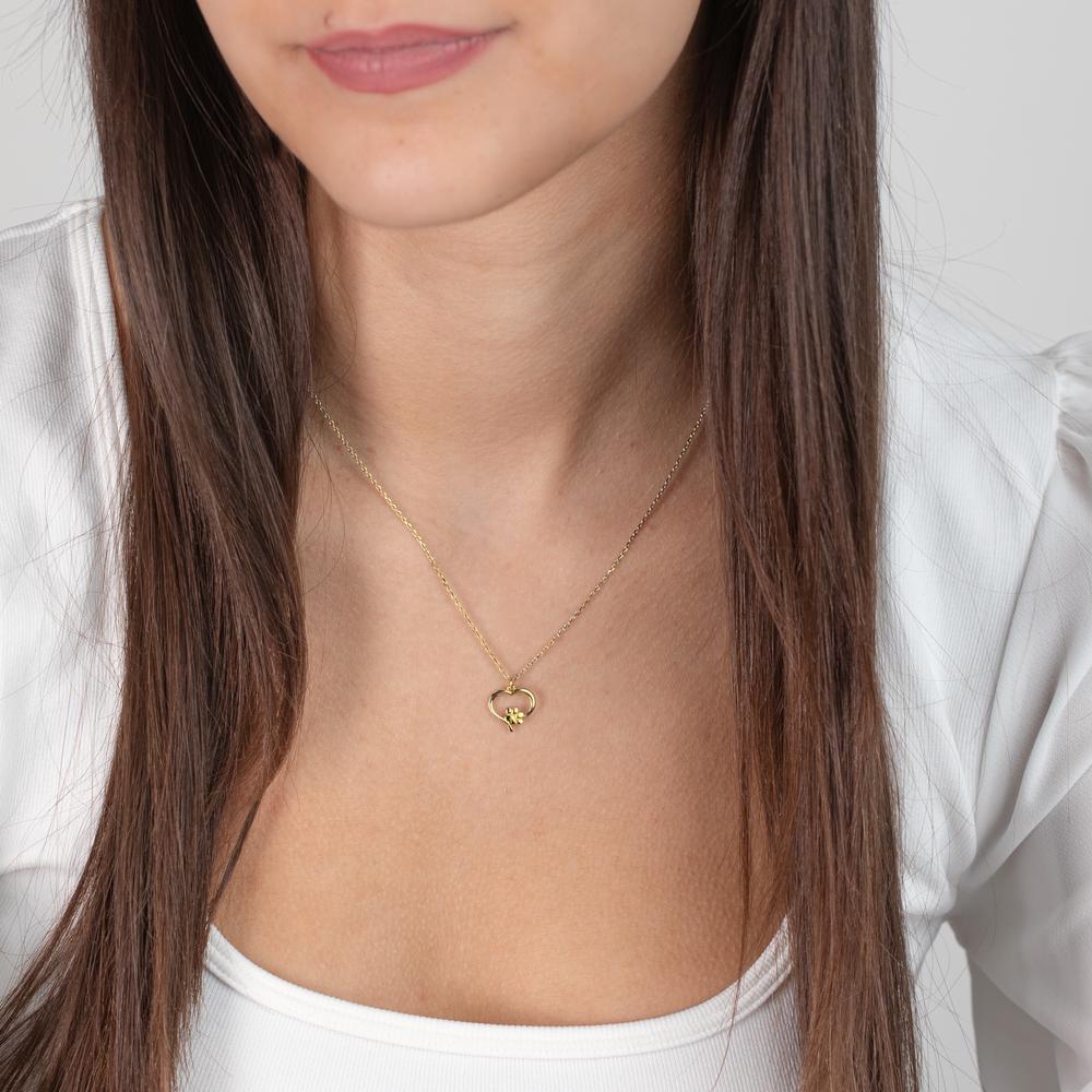 Dieses zarte Damen-Collier aus Silber besticht durch einen Herzanhänger mit einer kleinen Pfote in der Mitte. Das filigrane Design vereint Liebe zu Tieren mit edler Eleganz – das perfekte Accessoire für Tierliebhaberinnen, die stilvollen Schmuck lieben.