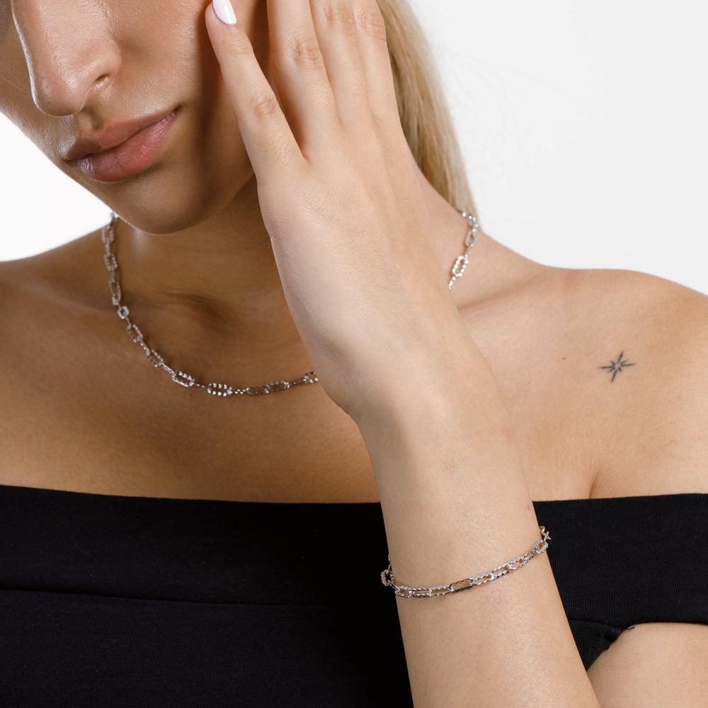 Elegantes Damen-Collier aus hochwertigem Silber mit glänzend facettierten Gliedern. Zeitloses Design, das vielseitig zu jedem Outfit und Anlass passt. Ein klassisches Schmuckstück, das dezenten Luxus und Stil perfekt verbindet. Ideal als Geschenk oder zum Selbsttragen.