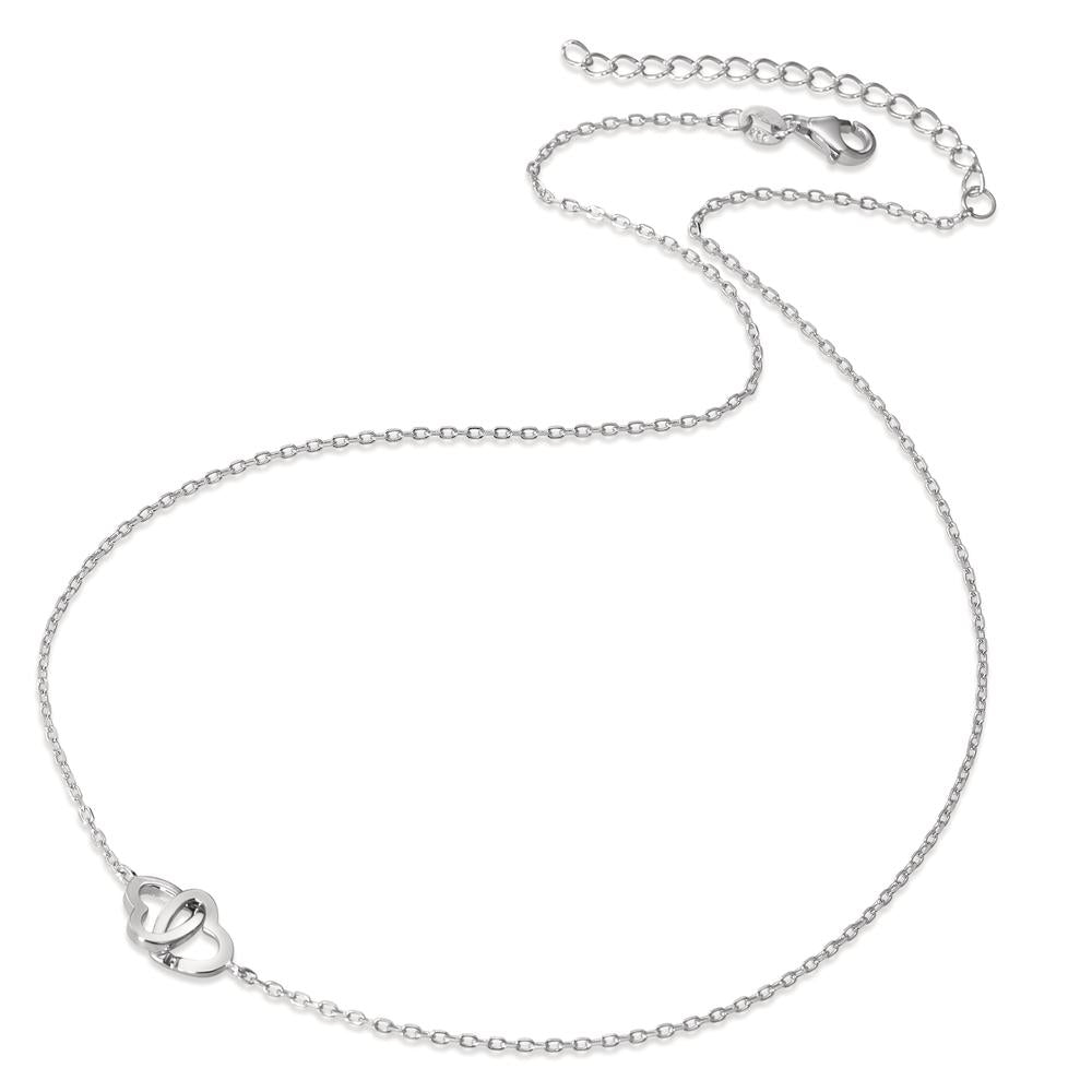 Elegantes Damen-Collier aus hochwertigem Silber mit zwei filigran ineinander verschlungenen Herzanhängern. Dieses zeitlose Schmuckstück symbolisiert Liebe und Verbundenheit und verleiht jedem Outfit eine besondere Note. Perfekt als Geschenk oder für den eigenen Stil.