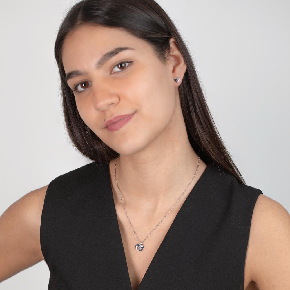 Dieses elegante Damen-Collier aus hochwertigem Silber besticht durch ein herzförmiges Anhänger-Design mit ausgeschnittener Pfote. Ein kleines Metallherz ergänzt die filigrane Kette und macht das Schmuckstück zum perfekten Accessoire für Tierliebhaberinnen. Zeitlos und charmant!