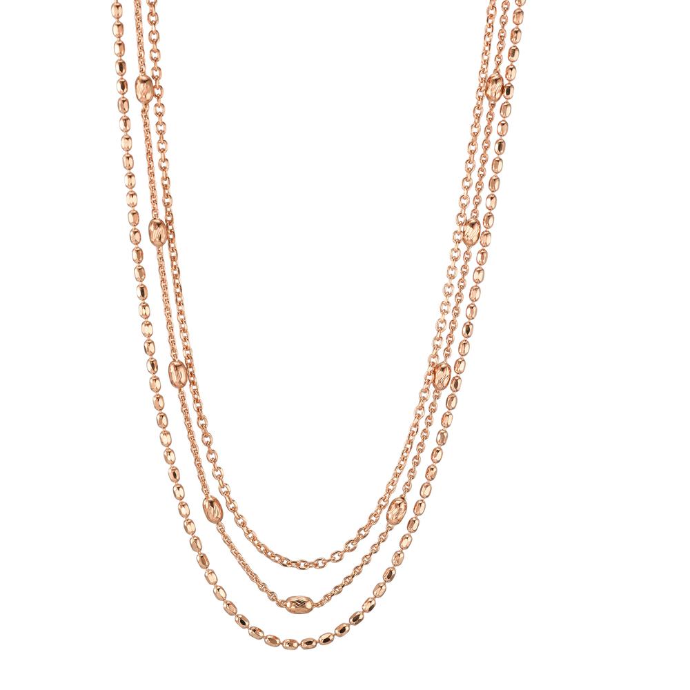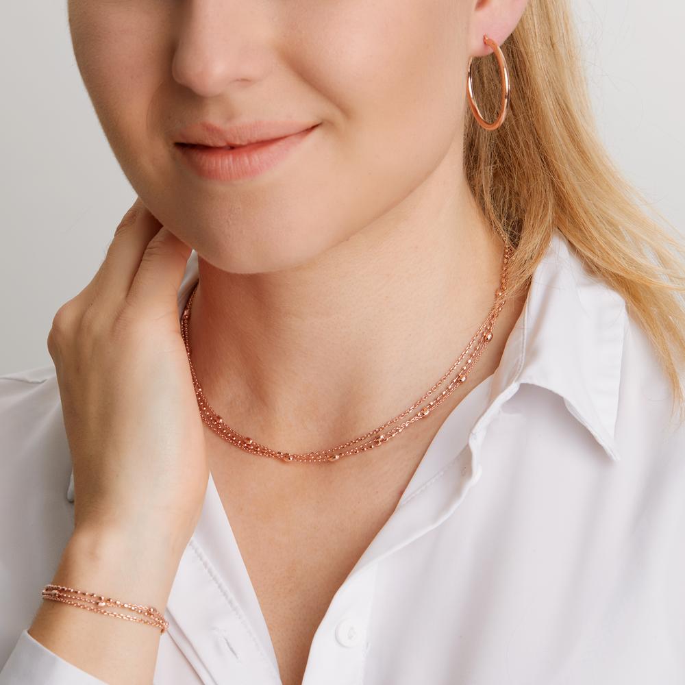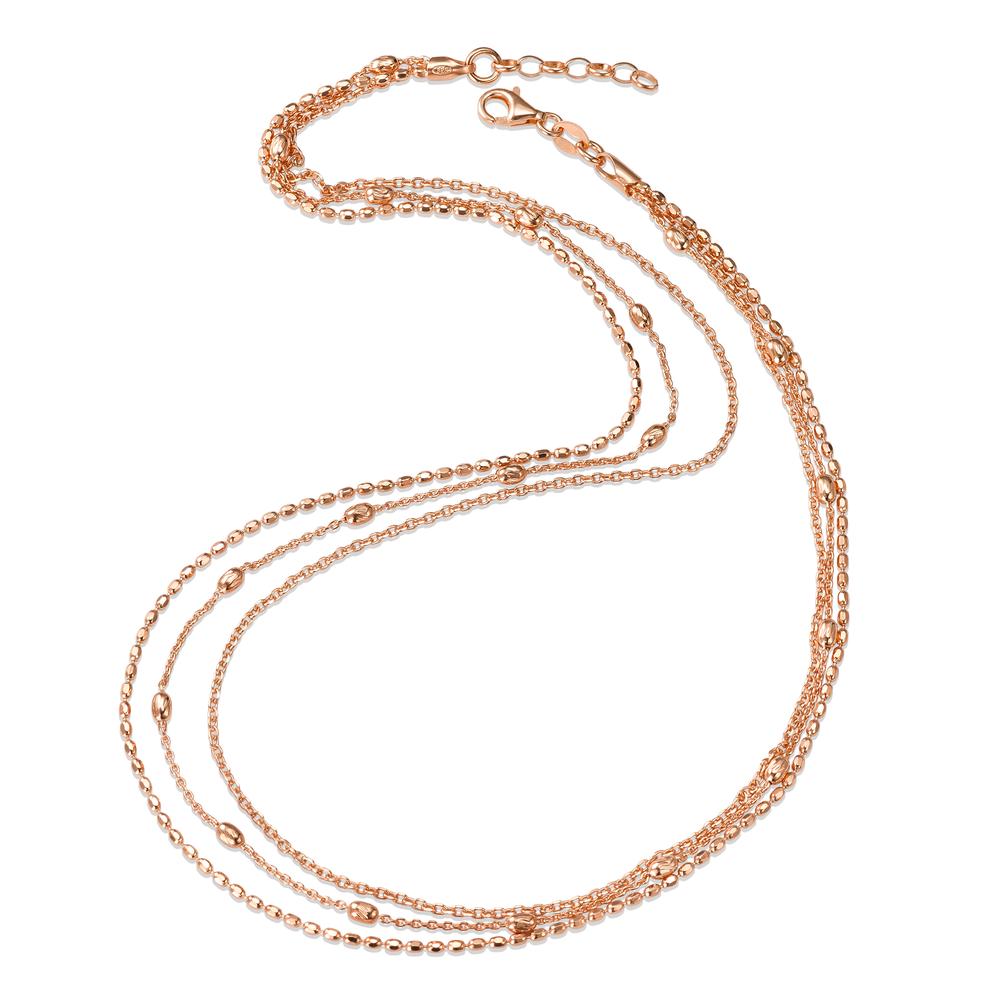Elegantes Damen-Collier aus hochwertigem Silber in trendiger Rosévergoldung. Die dreireihige Kette mit strukturierten und glatten Elementen verleiht jedem Outfit eine feminine und stilvolle Note. Ein zeitloses Schmuckstück für besondere Anlässe und den Alltag.