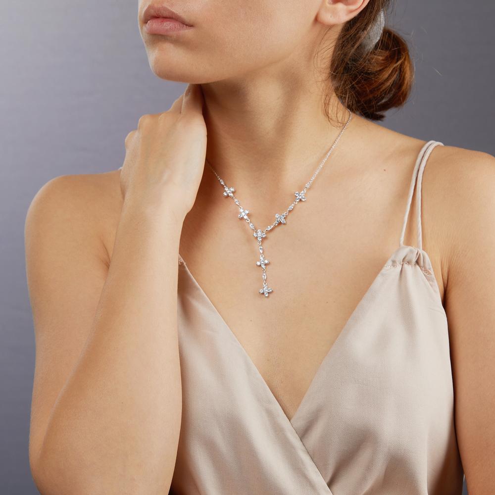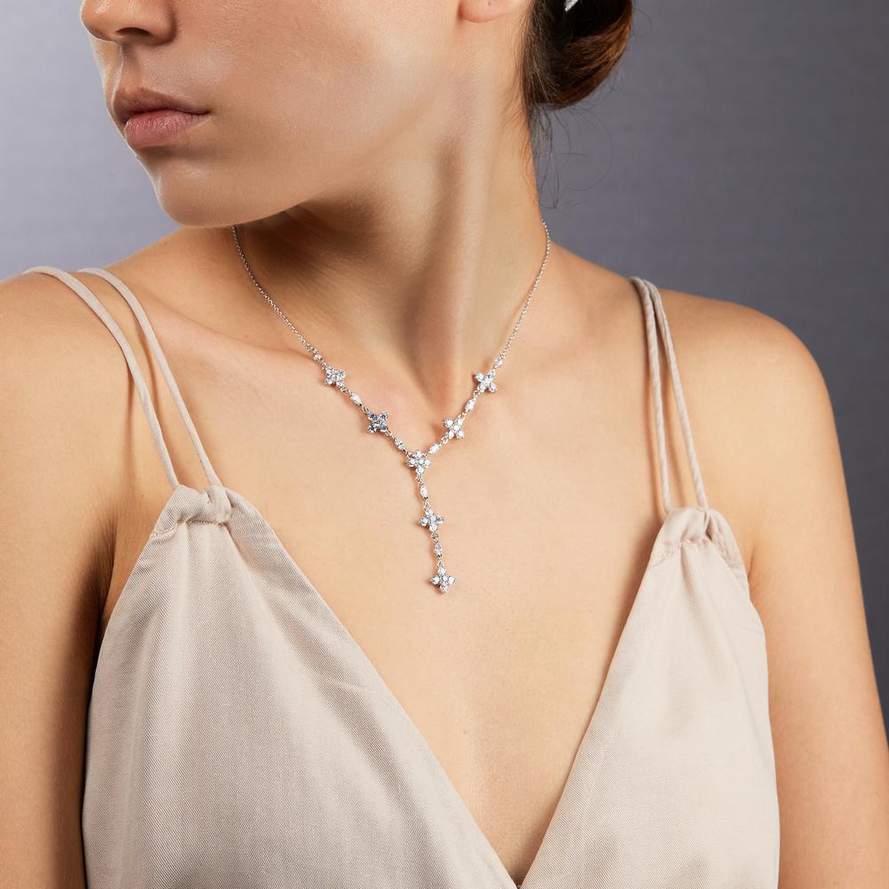 Elegantes Damen-Collier aus hochwertigem Silber, verziert mit funkelnden Zirkonia-Steinen. Die filigrane Verarbeitung und das strahlende Design machen dieses Schmuckstück zum perfekten Accessoire für besondere Anlässe oder den Alltag. Ein zeitloser Hingucker!