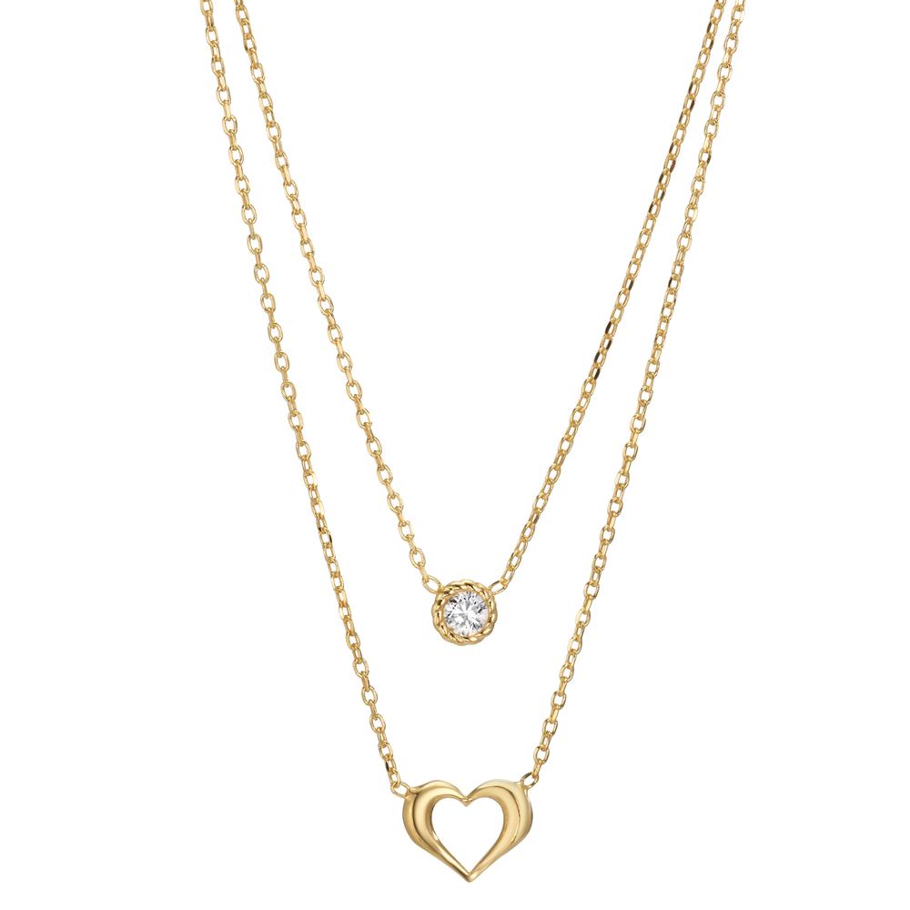Collier Silber Zirkonia gelb vergoldet Herz 40-45 cm verstellbar