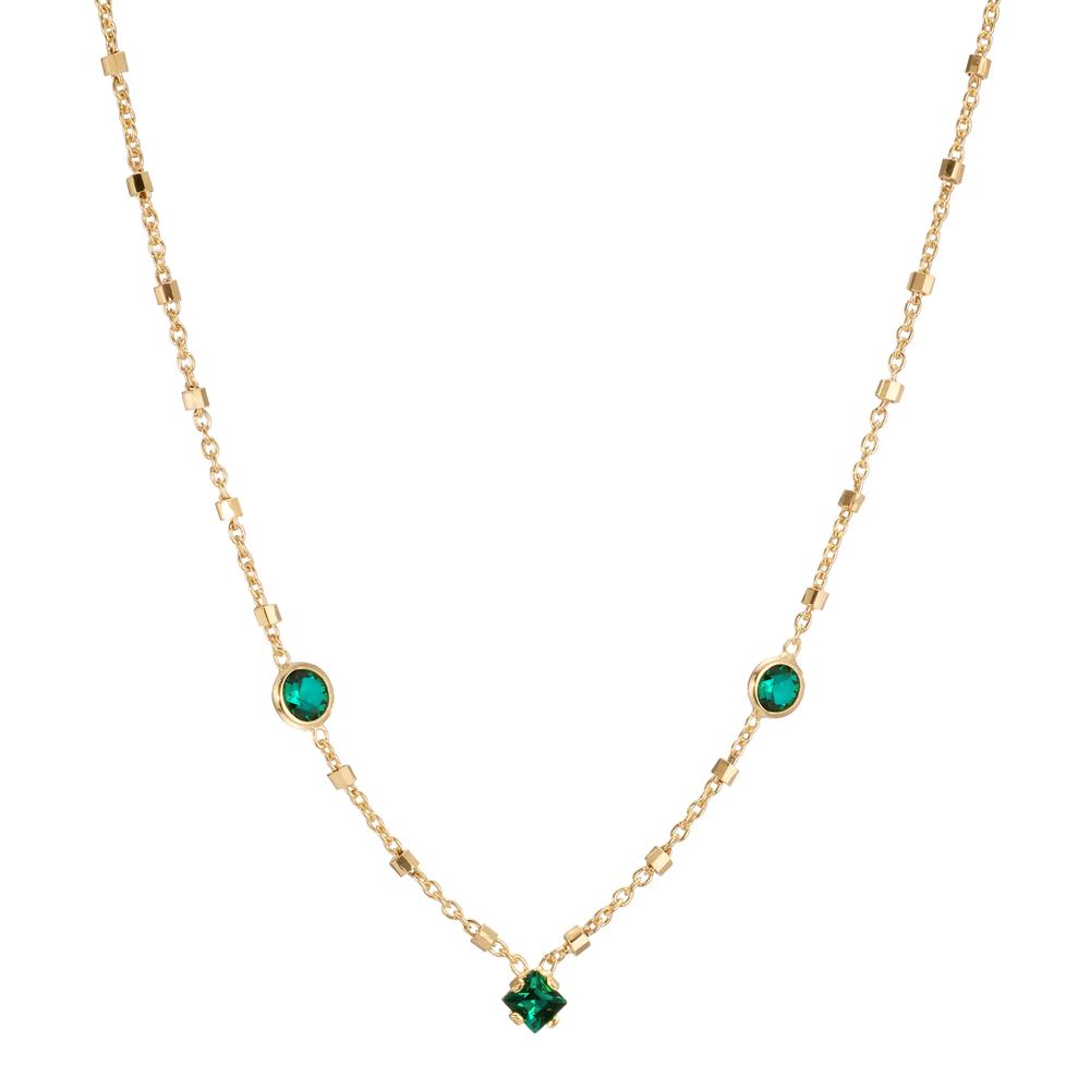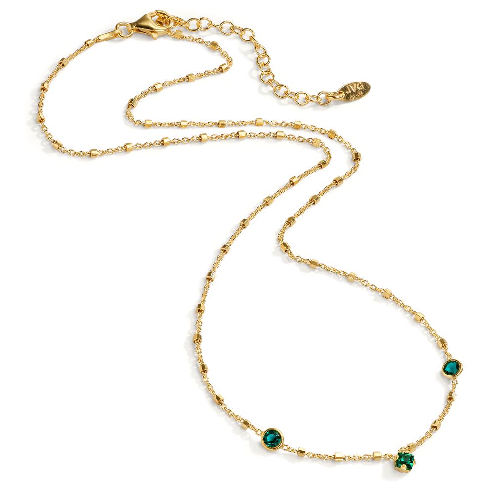 Collier Silber Zirkonia grün, 3 Steine gelb vergoldet 40-45 cm verstellbar