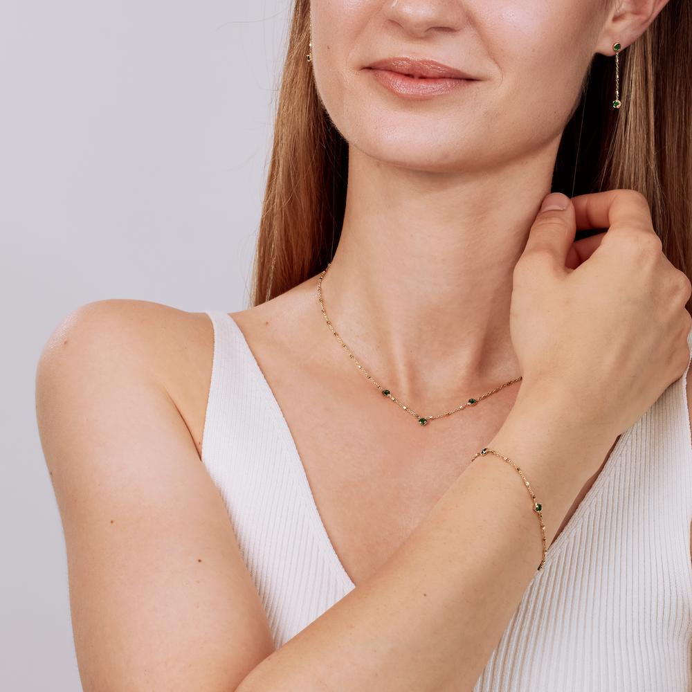 Elegantes Damen-Collier aus hochwertigem Silber mit funkelnden Zirkonia-Steinen in strahlendem Grün. Die feine Kette mit dekorativen Details verleiht jedem Outfit einen edlen und stilvollen Akzent – perfekt für besondere Anlässe oder den Alltag. Ein zeitloses Schmuckstück.