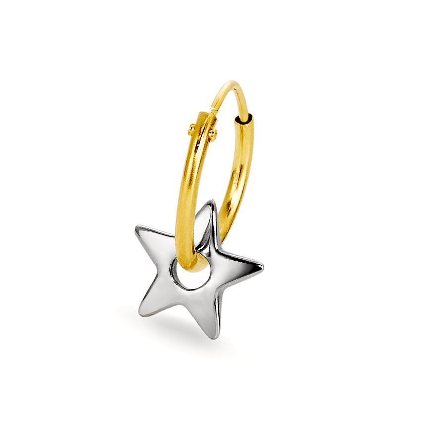 Elegante Herren-Creole aus hochwertigem 750er Gelbgold mit stilvollem Stern-Einhänger in Silber. Zeitloses Design, perfekt für den modernen Mann, der Wert auf dezenten Schmuck mit besonderer Note legt. Leicht zu tragen und ein tolles Accessoire für jeden Anlass.
