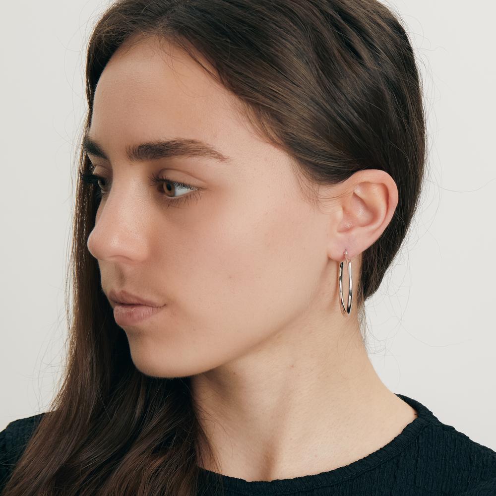 Elegante Damen-Creolen aus glänzendem Silber. Zeitloses Design, das zu jedem Look passt – ob casual oder festlich. Leicht und angenehm zu tragen, setzen diese Ohrringe stilvolle Akzente und sind ein Must-have für Schmuckliebhaberinnen. Ein klassisches Accessoire für jeden Anlass.