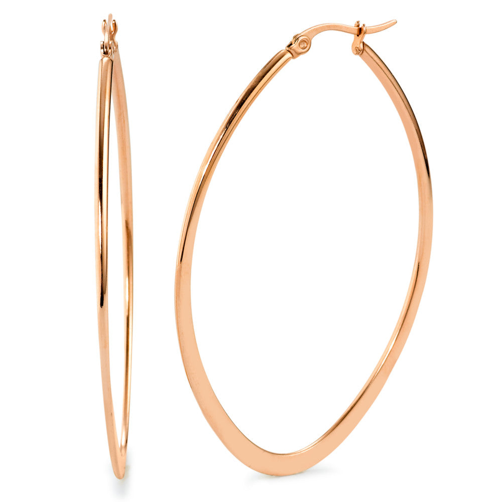 Elegante Damen Creolen aus hochwertigem Edelstahl in modischem Roségold. Das schlanke, ovale Design verleiht jedem Outfit einen stilvollen Akzent. Hypoallergen und langlebig – perfekt für den täglichen Gebrauch oder besondere Anlässe. Leicht und angenehm zu tragen.