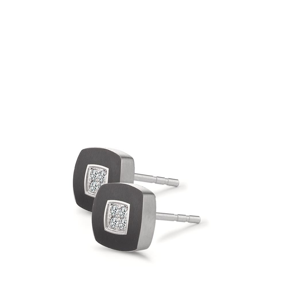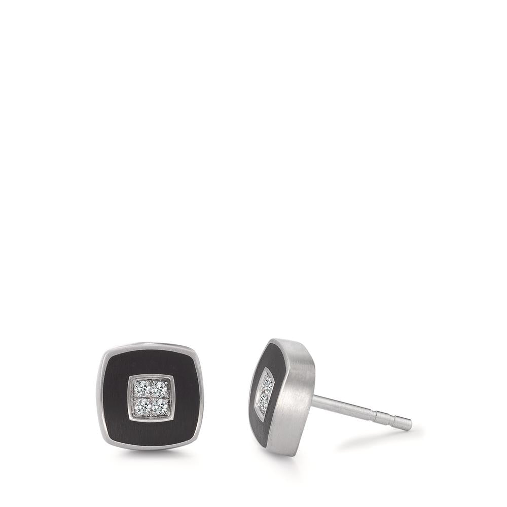 Elegante Damen Ohrstecker aus Edelstahl mit edler schwarzer Keramik kombiniert. Im Zentrum funkeln kleine Brillanten, die subtile Glanzakzente setzen. Ein modernes, zeitloses Design für stilvolle Auftritte – perfekt für jeden Anlass und jeden Tag.