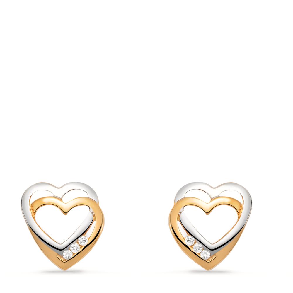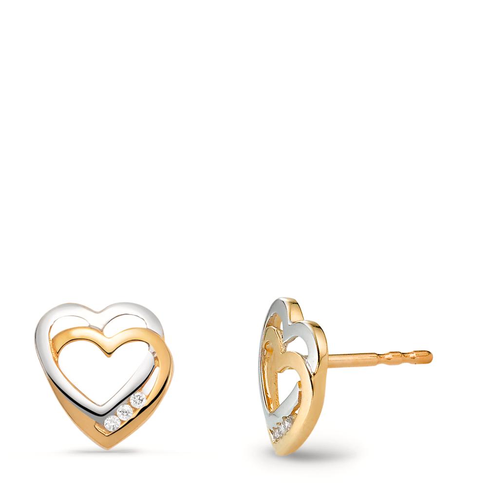 Elegante Damen-Ohrstecker aus 375er Gelb- und Weißgold in Herzform. Verziert mit funkelnden Diamanten, sind sie ein zeitloses Schmuckstück, das jedem Look einen edlen Akzent verleiht. Perfekt für besondere Anlässe oder den Alltag – pure Romantik für Ihr Ohr.