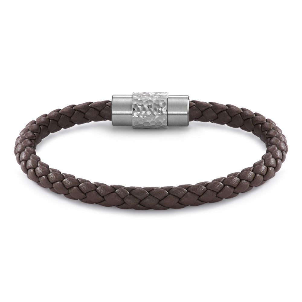 Elegantes Herrenarmband aus braun geflochtenem Leder mit robustem Edelstahlverschluss. Das zeitlose Design kombiniert Stil und Funktionalität für den modernen Mann. Perfekt für den Alltag oder besondere Anlässe. Hochwertig verarbeitet und angenehm zu tragen.