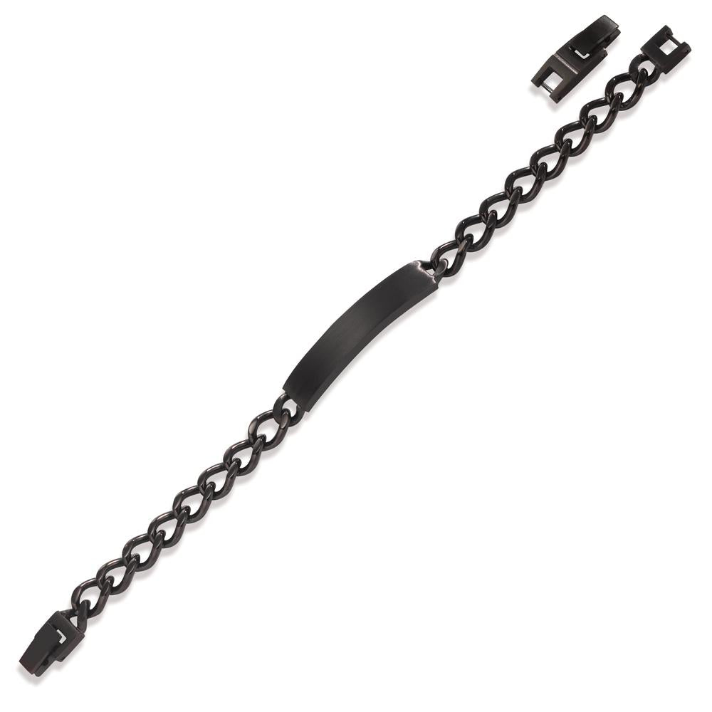 Stylisches Herrenarmband aus robustem Edelstahl in schwarzer Optik. Das maskuline Design mit Gliederkette und edlem Ident-Plättchen verleiht jedem Outfit eine moderne Note. Perfekt für den Alltag oder besondere Anlässe – langlebig und angenehm zu tragen.