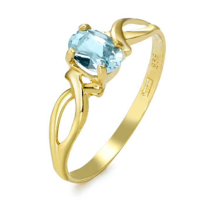 Fingerring 585/14 K Gelbgold Topas blau, oval