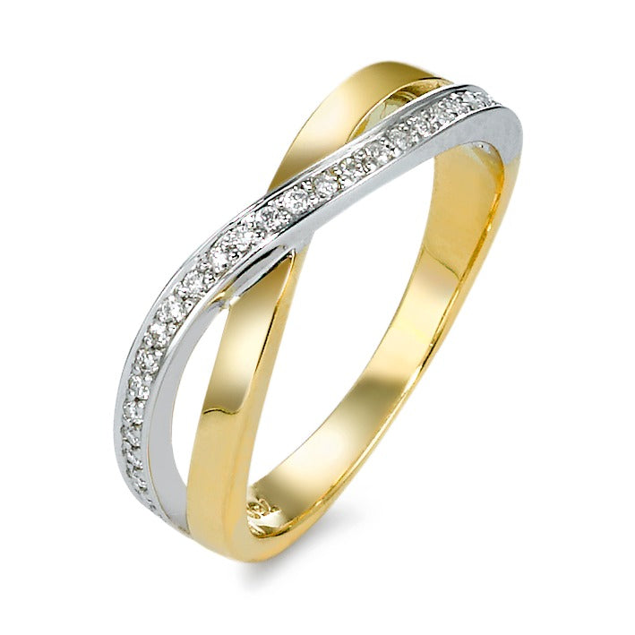 Fingerring 750/18 K Gelbgold, 750/18 K Weissgold Diamant 0.13 ct, 27 Steine, w-si