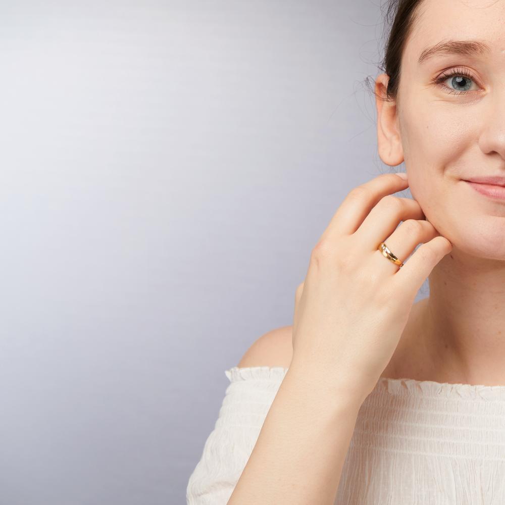 Eleganter Damenring aus 750er Gelbgold mit drei funkelnden Zirkonia-Steinen. Das Design besticht durch eine elegante Teilung des Rings, die den Schmuck besonders modern und stilvoll wirken lässt. Perfekt für jeden Anlass und ein strahlender Hingucker.
