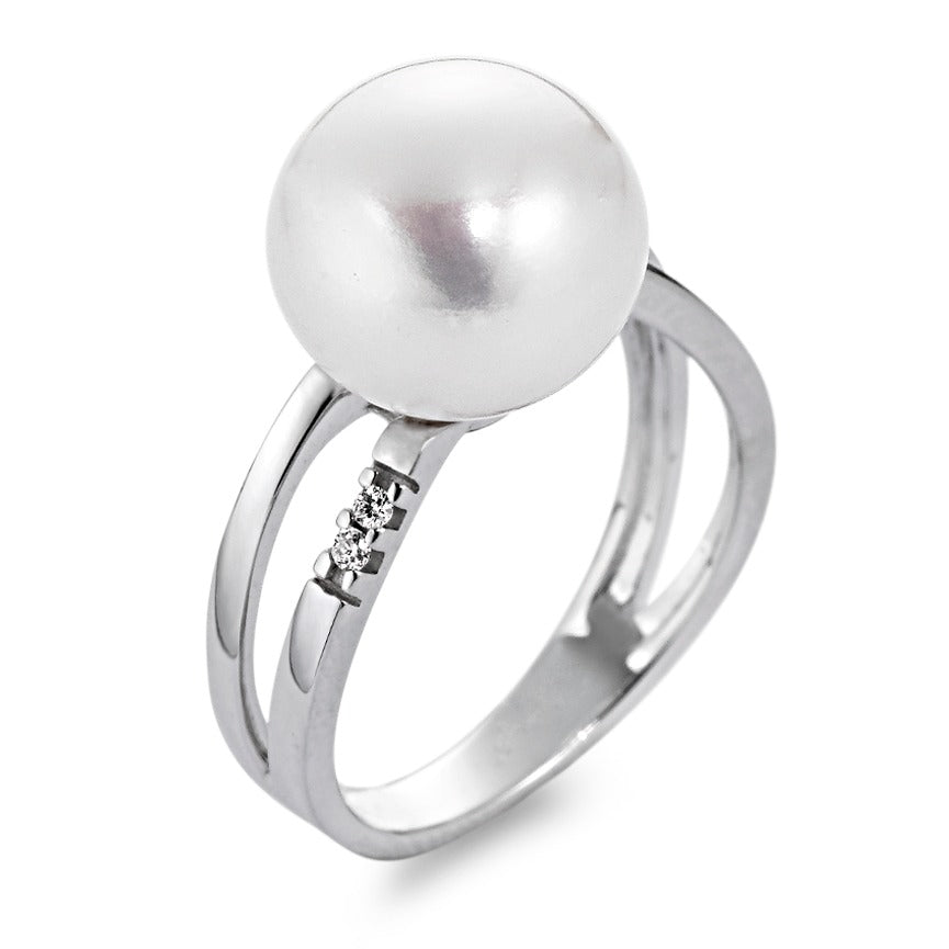 Fingerring 750/18 K Weissgold Diamant 0.03 ct, 4 Steine, w-si Süsswasserzuchtperle weiss 10-11 mm