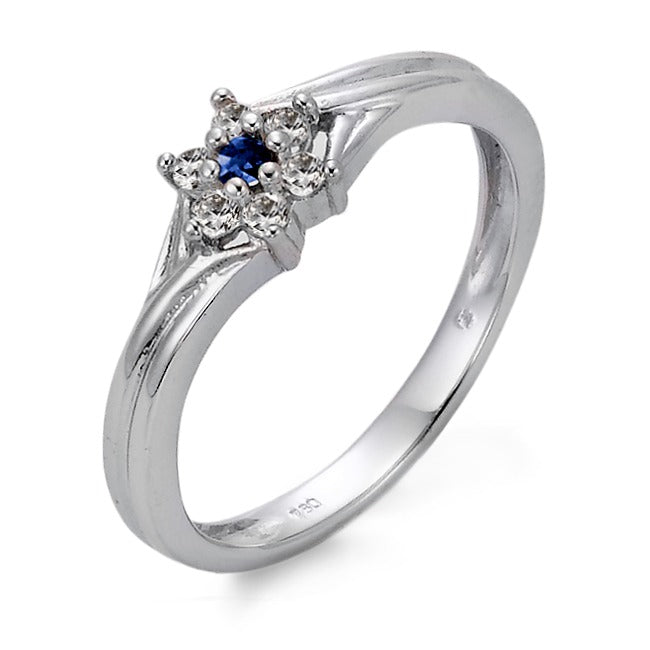 Fingerring 750/18 K Weissgold Saphir blau, Saphir weiss, 6 Steine Blume Ø6 mm