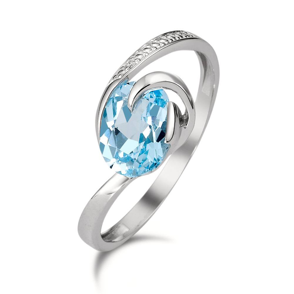 Fingerring 750/18 K Weissgold Topas blau, oval, Diamant weiss, 0.005 ct, w-si