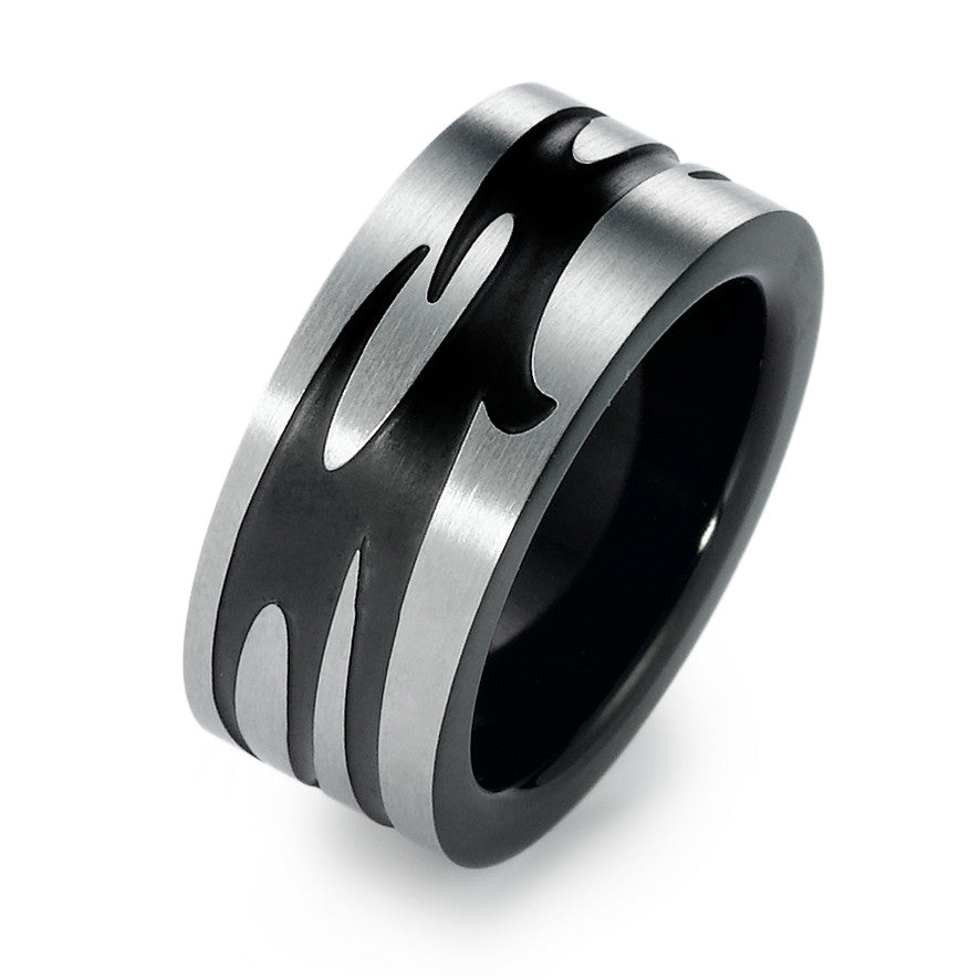Moderner Herren Fingerring aus robustem Edelstahl. Das maskuline Design mit schwarzem Tribal-Muster setzt stylische Akzente. Hochwertige Verarbeitung sorgt für langlebigen Tragekomfort und besonderen Look. Perfekt für jeden Tag und besondere Anlässe.