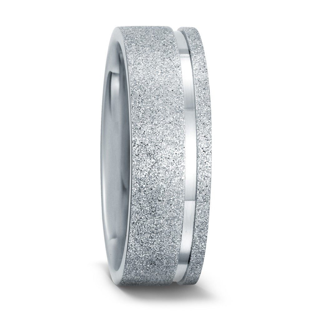 Eleganter Fingerring aus hochwertigem Edelstahl mit funkelnder, fein strukturierter Oberfläche. Der dezente Glanz und die schmale polierte Linie verleihen dem Ring modernen Charme und machen ihn zum perfekten Accessoire für jeden Anlass. Robust und hautfreundlich.