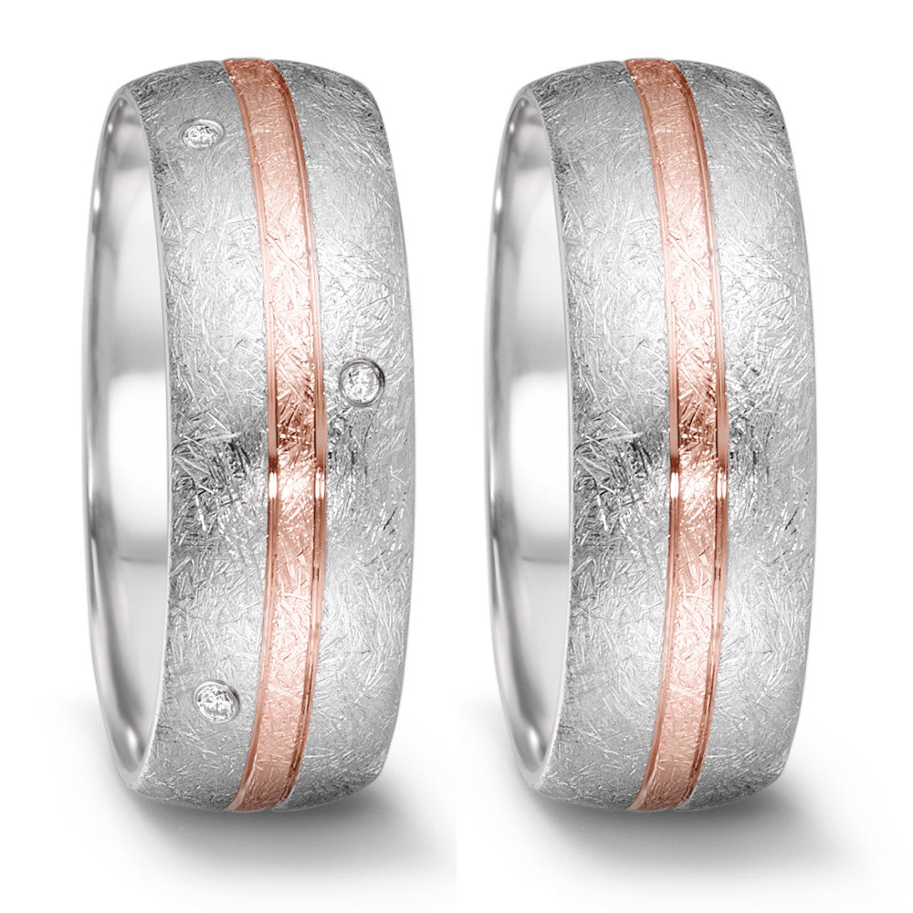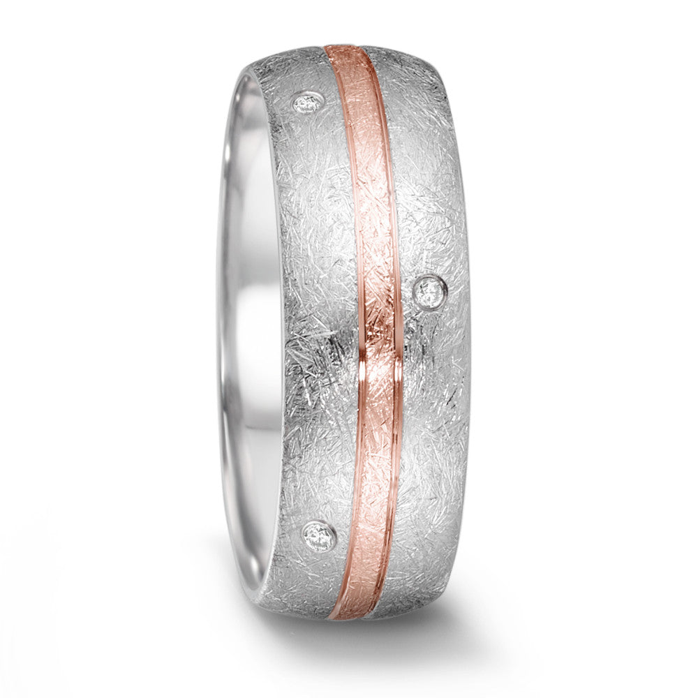 Fingerring Edelstahl, 750/18 K Rosegold Diamant 0.064 ct, 8 Steine, tw-si