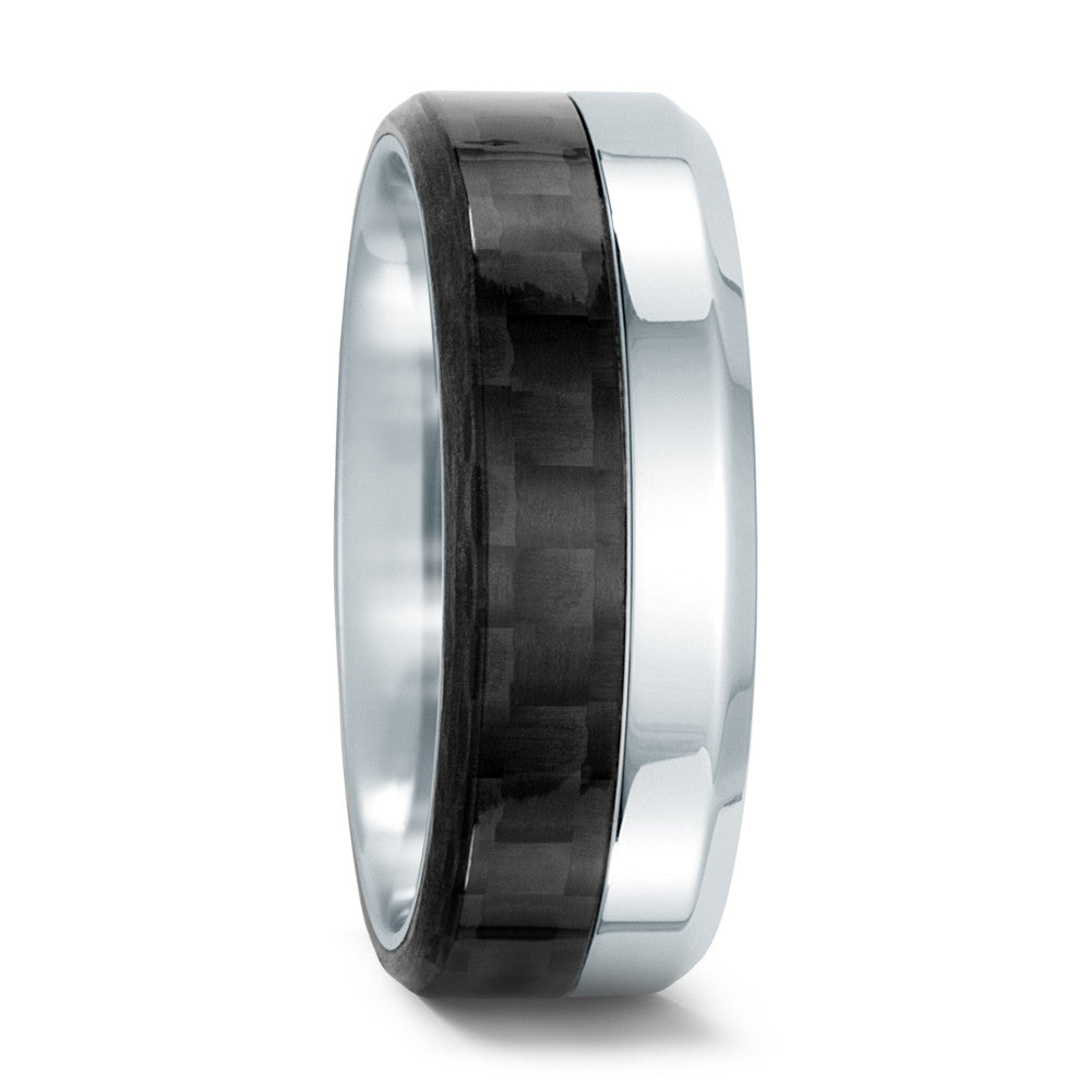 Moderner Herren Fingerring aus hochwertigem Edelstahl mit edler Carbon-Einlage. Der Kontrast zwischen poliertem Metall und dunklem Carbon verleiht dem Ring einen markanten, stilvollen Look. Perfekt für selbstbewusste Männer, die zeitlosen Schmuck mit technischem Flair schätzen.