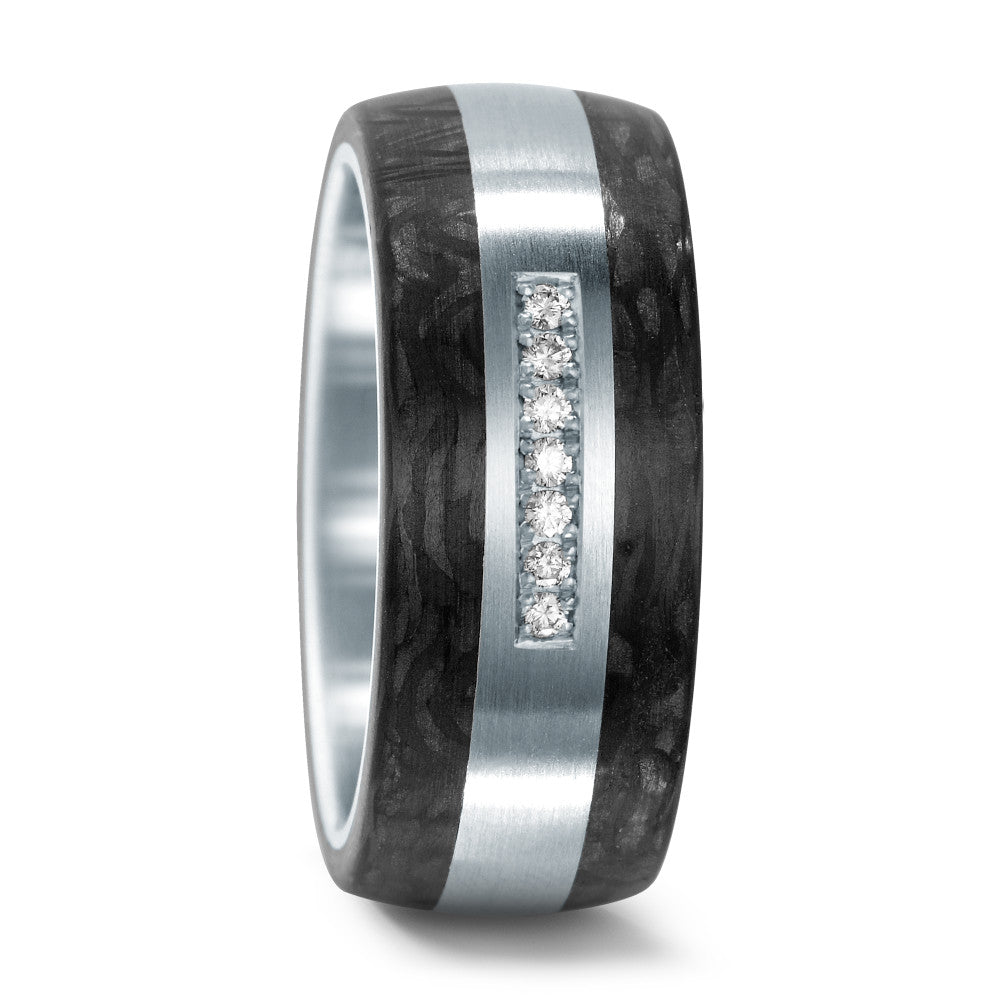 Fingerring Edelstahl, Carbon Diamant 0.10 ct, 7 Steine, w-si