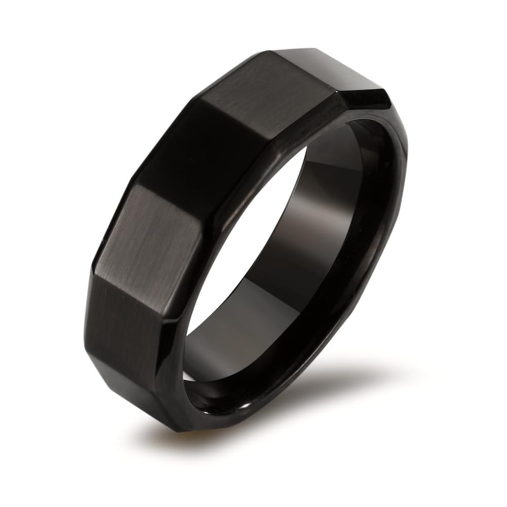Moderner Herren Fingerring aus hochwertigem Edelstahl in elegantem Schwarz. Das facettierte Design verleiht dem Ring einen markanten Look und sorgt für hohe Robustheit im Alltag. Ideal für stilbewusste Männer, die Wert auf Qualität und zeitloses Design legen.