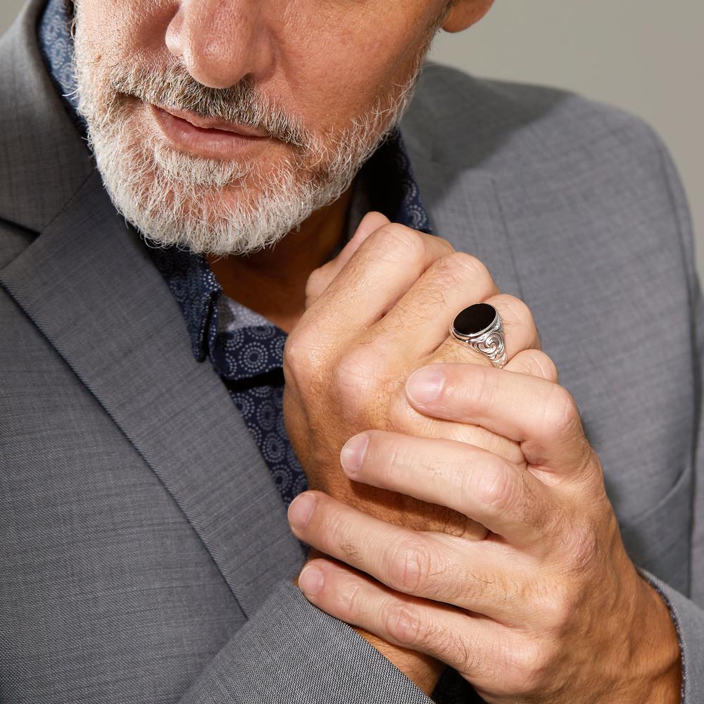 Massiver Herren Fingerring aus hochwertigem Silber mit elegantem Onyx-Stein. Das detailreiche Design macht diesen Ring zu einem zeitlosen Klassiker, der jedem Outfit eine edle Note verleiht. Perfekt für stilbewusste Männer, die Qualität und Ausdruck schätzen.